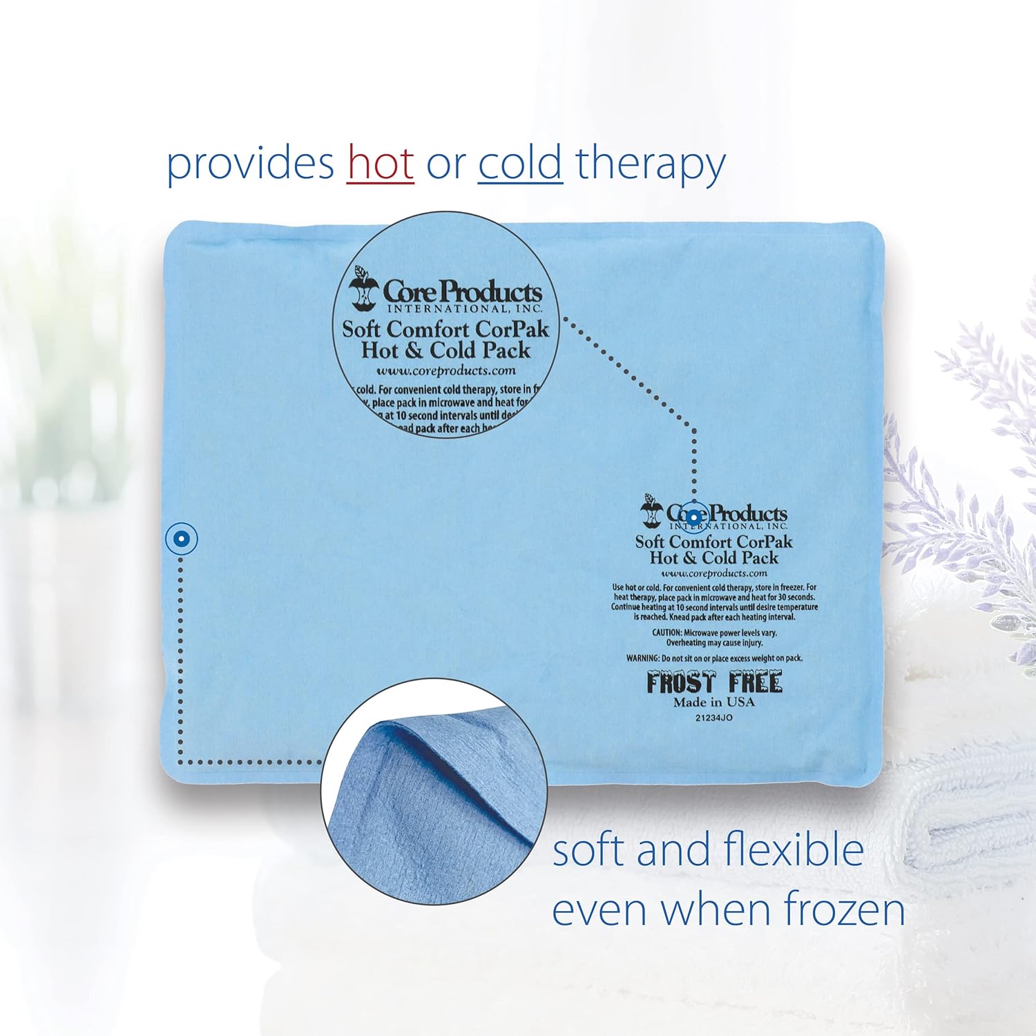 Core Products Soft Comfort CorPak – Reusable Hot & Cold Therapy Pack, Ice Pack for Injuries, No-Frost Compress for Muscle, Back & Joint Pain Relief – 10" x 13", Made in USA
