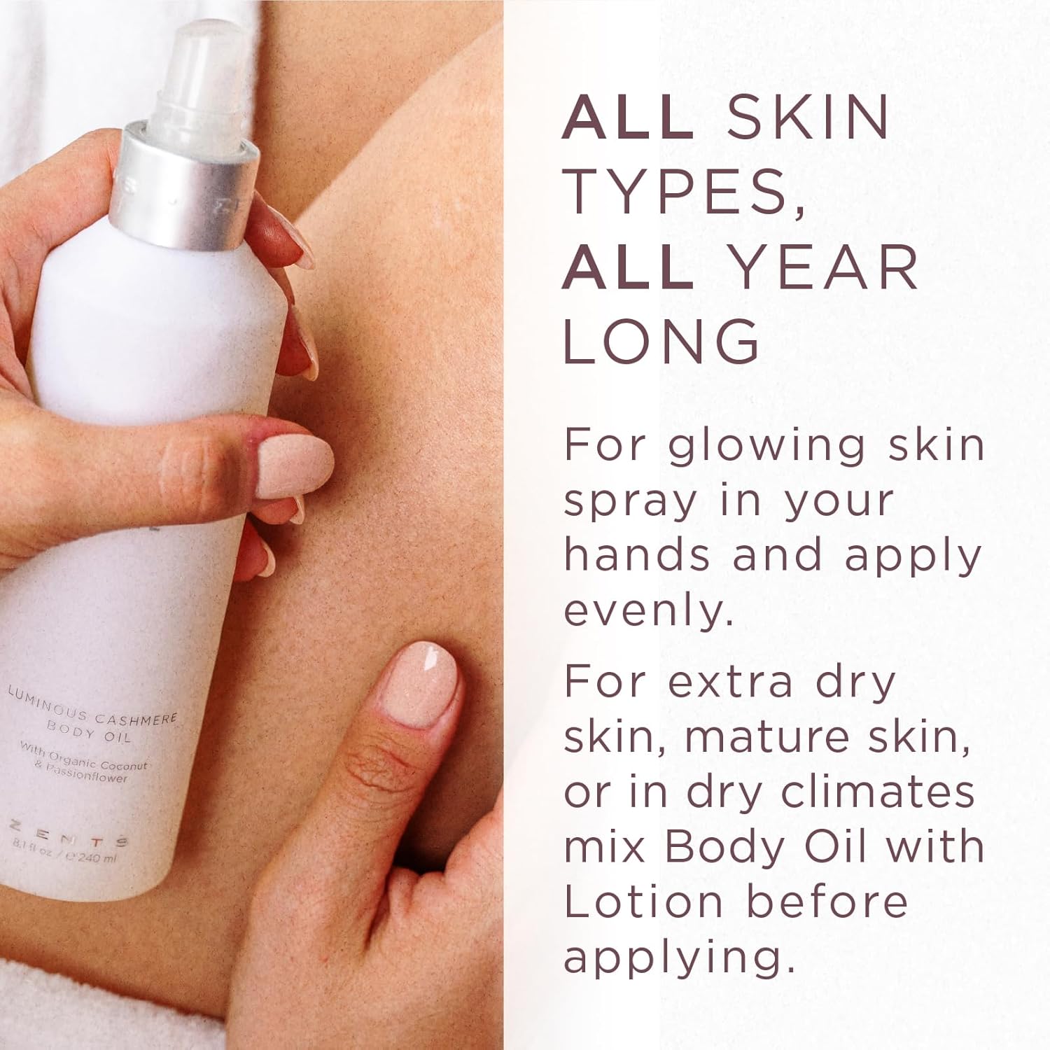 Zents Luminous Cashmere Body Oil (Ore Fragrance) | Moisturizing Body Oil with Vitamin E & Organic Coconut Oil | Softens & Smooths Skin | 8 fl oz