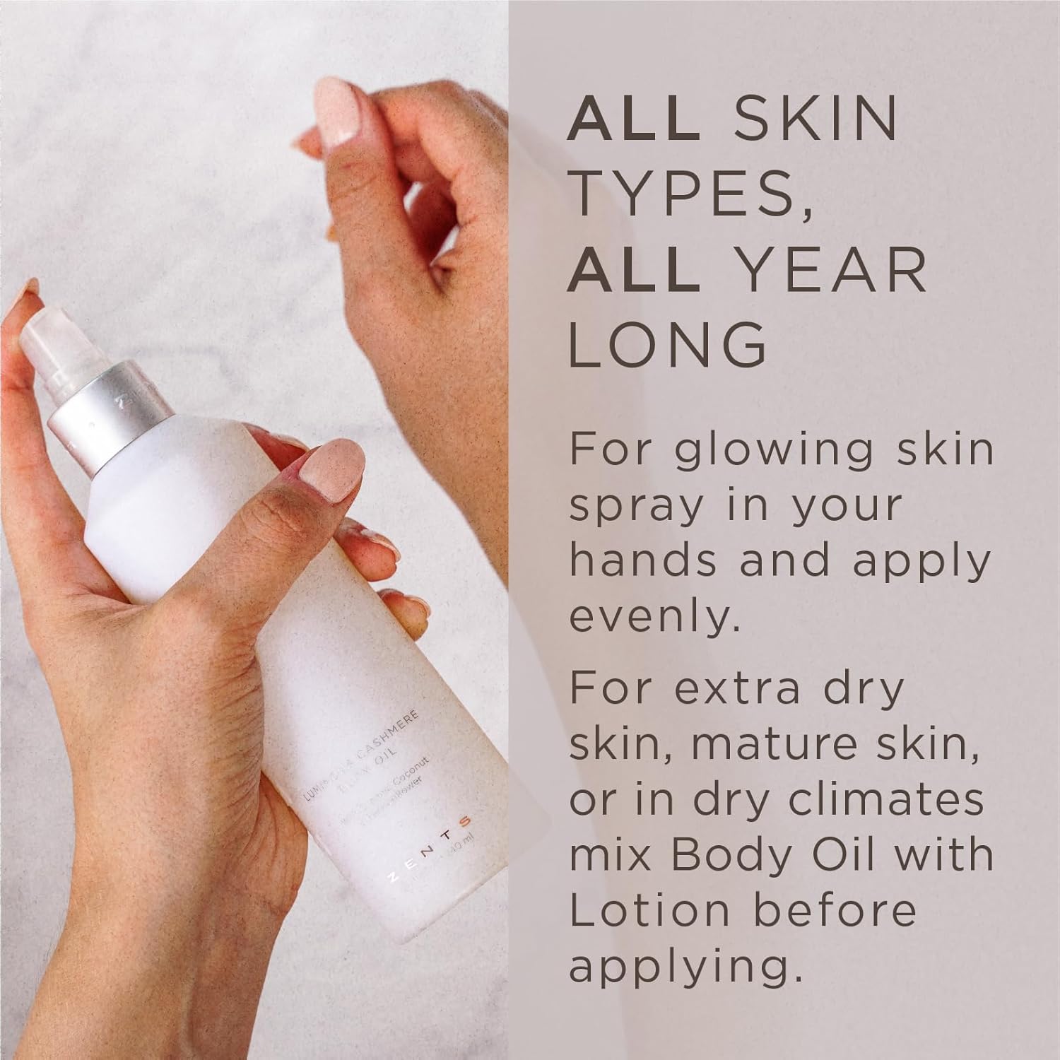 Zents Luminous Cashmere Body Oil (Fig Fragrance) | Moisturizing Body Oil with Vitamin E & Organic Coconut Oil | Softens & Smooths Skin | 8 fl oz