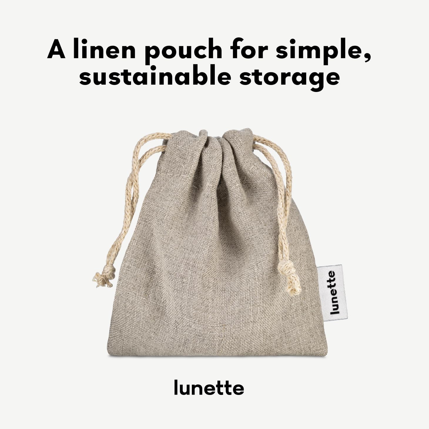 - Each Lunette Period Cup comes with a storage pouch in 100% EU linen and a collectible bookmark