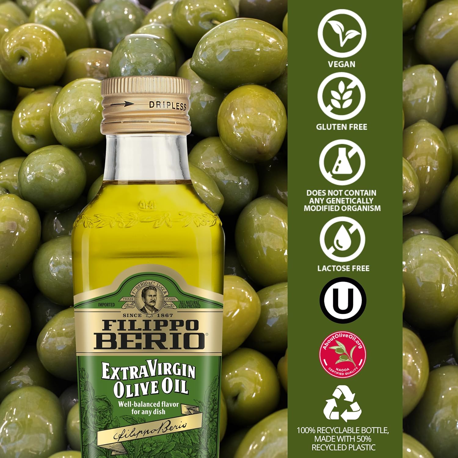 - With fruit and grass notes, Filippo Berio Extra Virgin Olive Oil is well-balanced with a pleasant olive aftertaste.