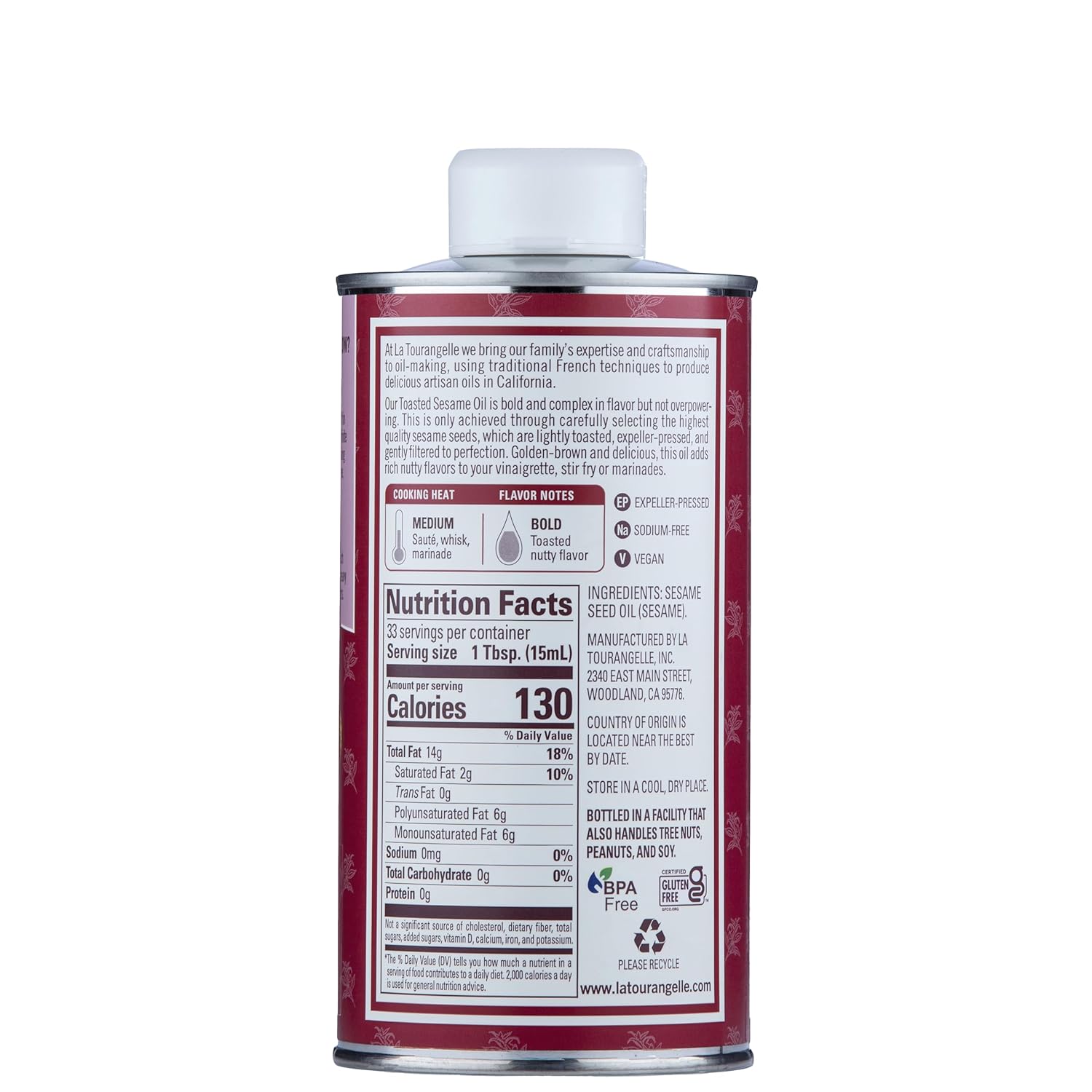 La Tourangelle, Toasted Sesame Oil, Great for Cooking, Add to Noodles, Stir-Fry, Vegetables, Vinaigrettes, and Marinades, 16.9 Fl Oz