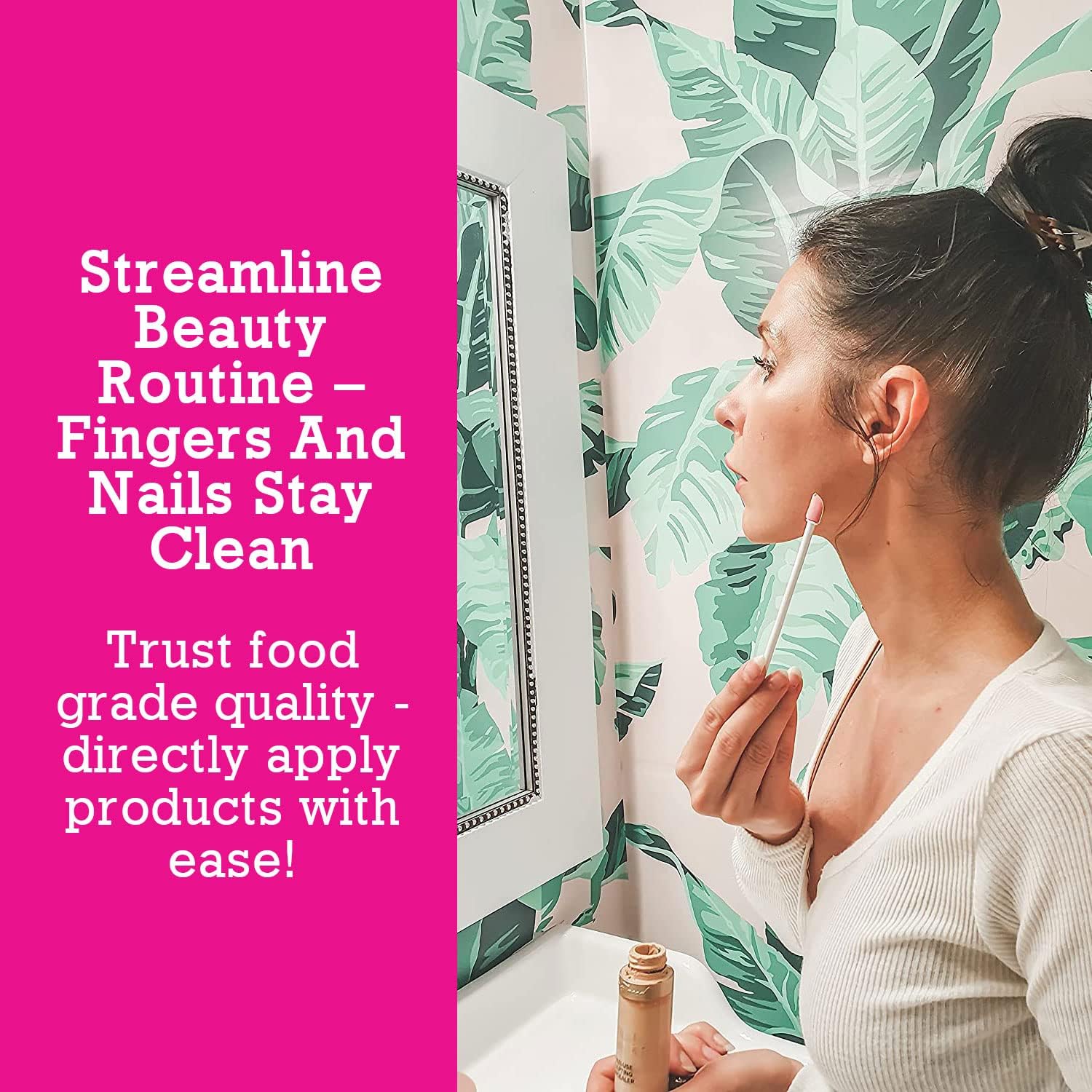 - MOM DESIGNED – Reusable, flexible, dishwasher safe material is fully compliant to apply product directly to your skin; extra skinny scraper fits to scoop virtually every beauty product on the market