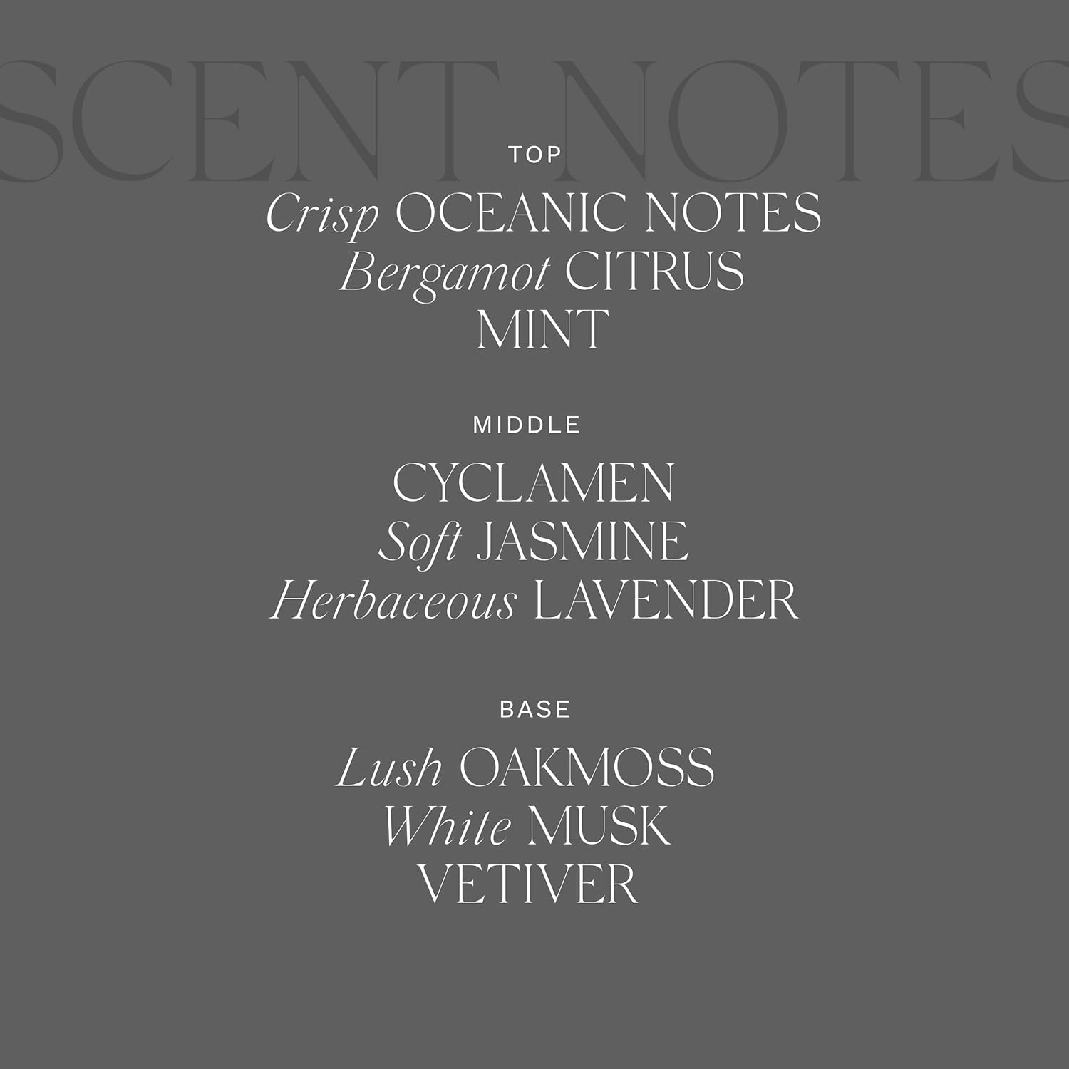 - Scent : Bergamot & Ocean Aria