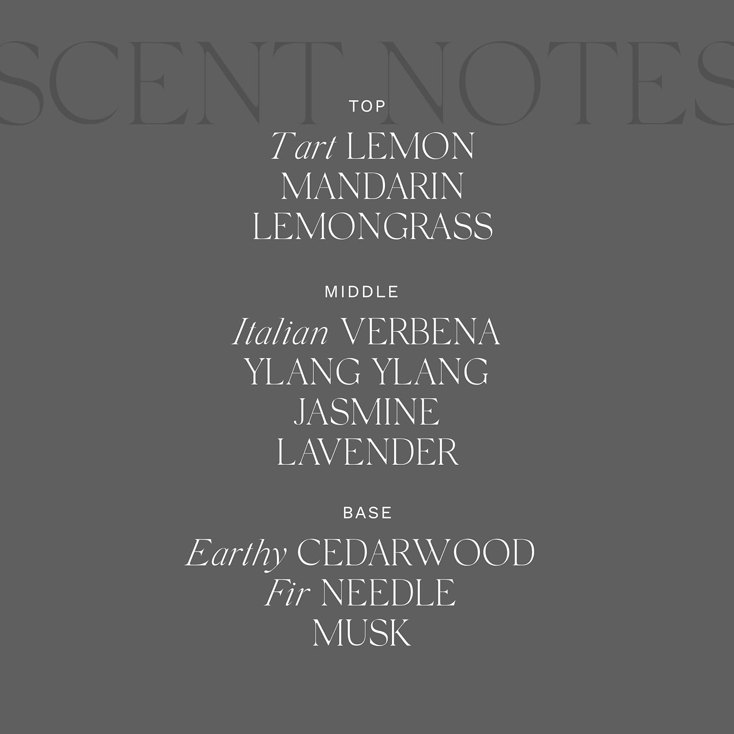- Scent : Lemon, Verbena & Cedar