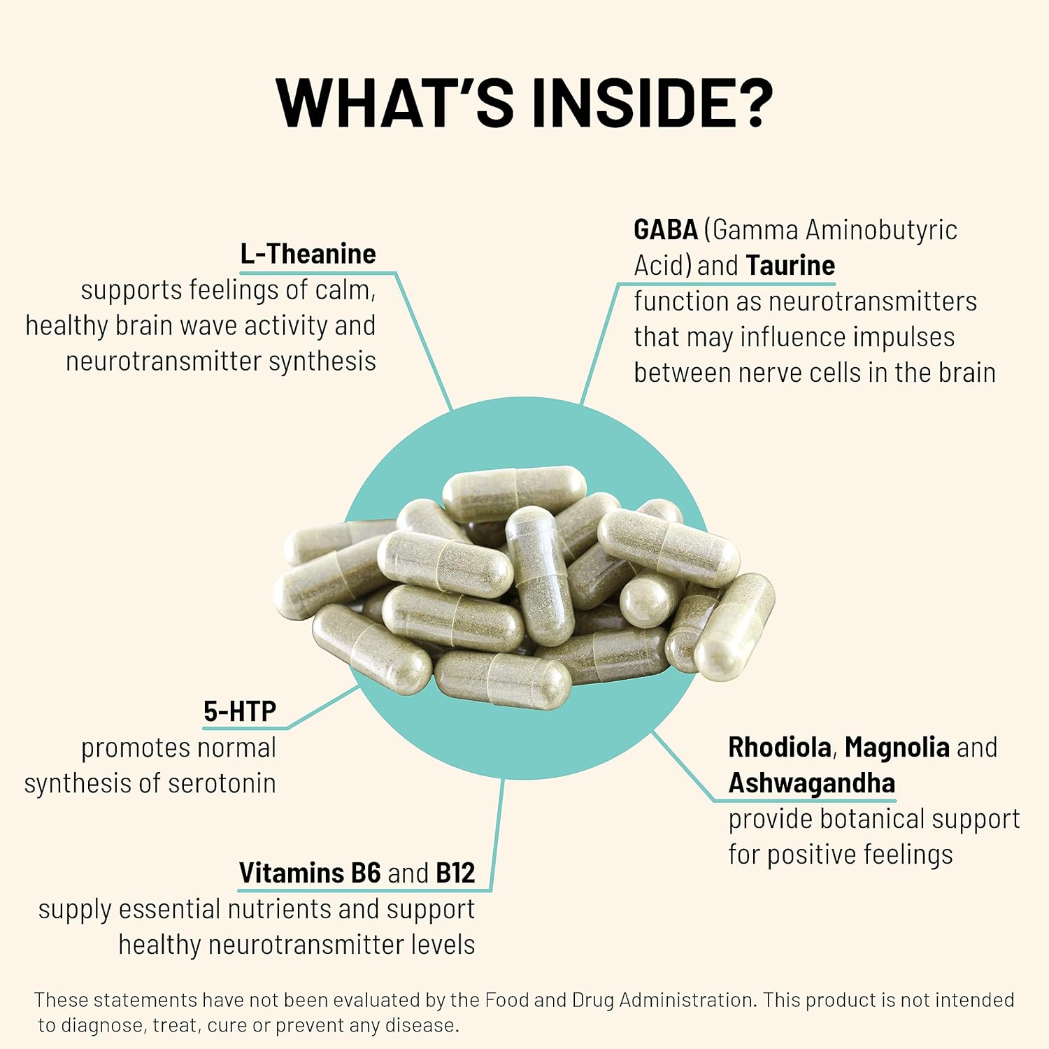 - SAFE INGREDIENTS: Tranquility supplement contains Vitamin B6, B12, Ashwagandha, Folinic Acid, Magnesium Citrate, GABA, L-Taurine, 5-HTP, L-Theanine, Rhodiola rosea, Magnolia officinalis, Taurine, and Piperine!