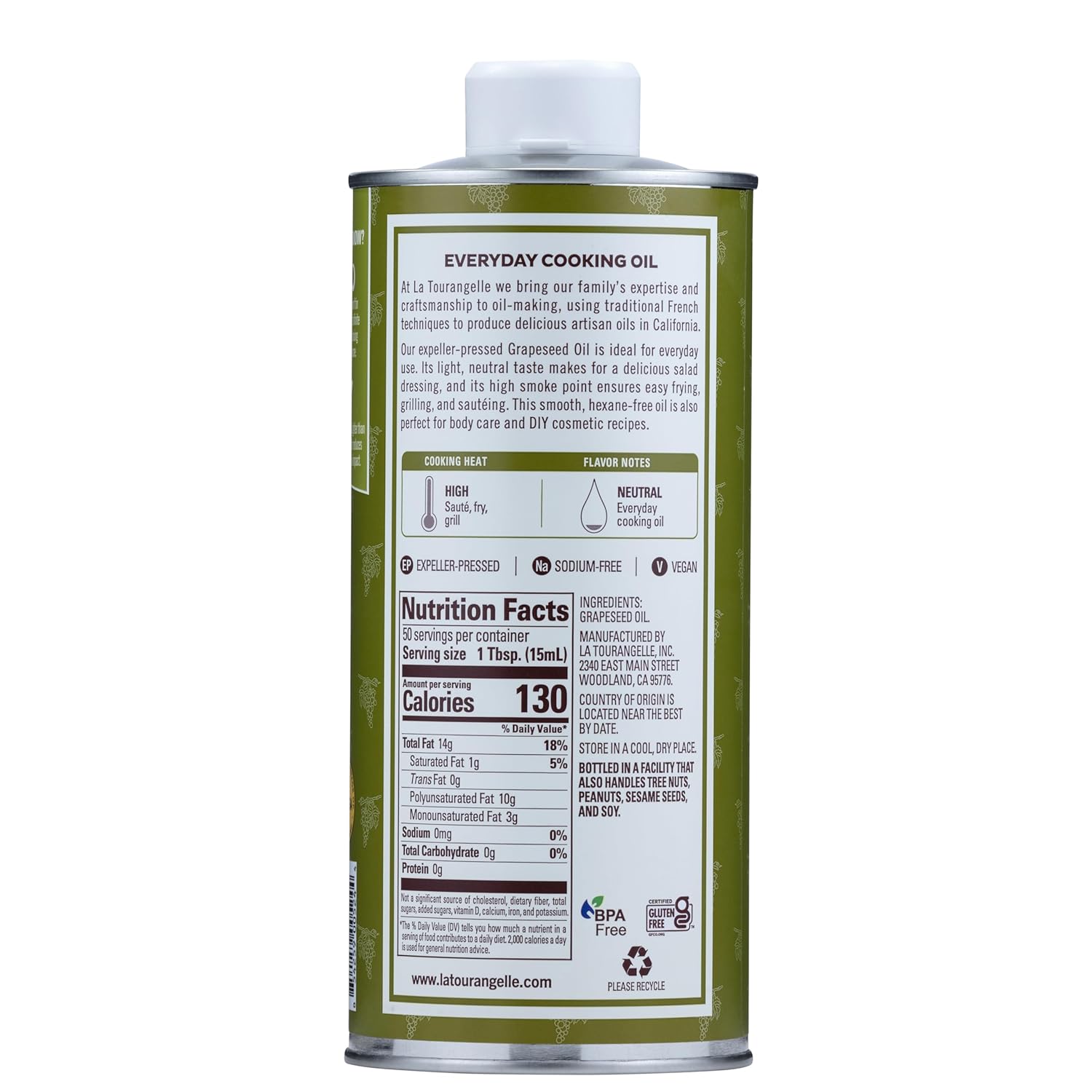 - Natural and Sustainable: La Tourangelle's natural artisan oils and vinaigrettes provide the perfect touch to make a gourmet breakfast, lunch, or dinner. We strive to make carefully crafted, sustainable products. Expeller-pressed, Non-GMO and Kosher