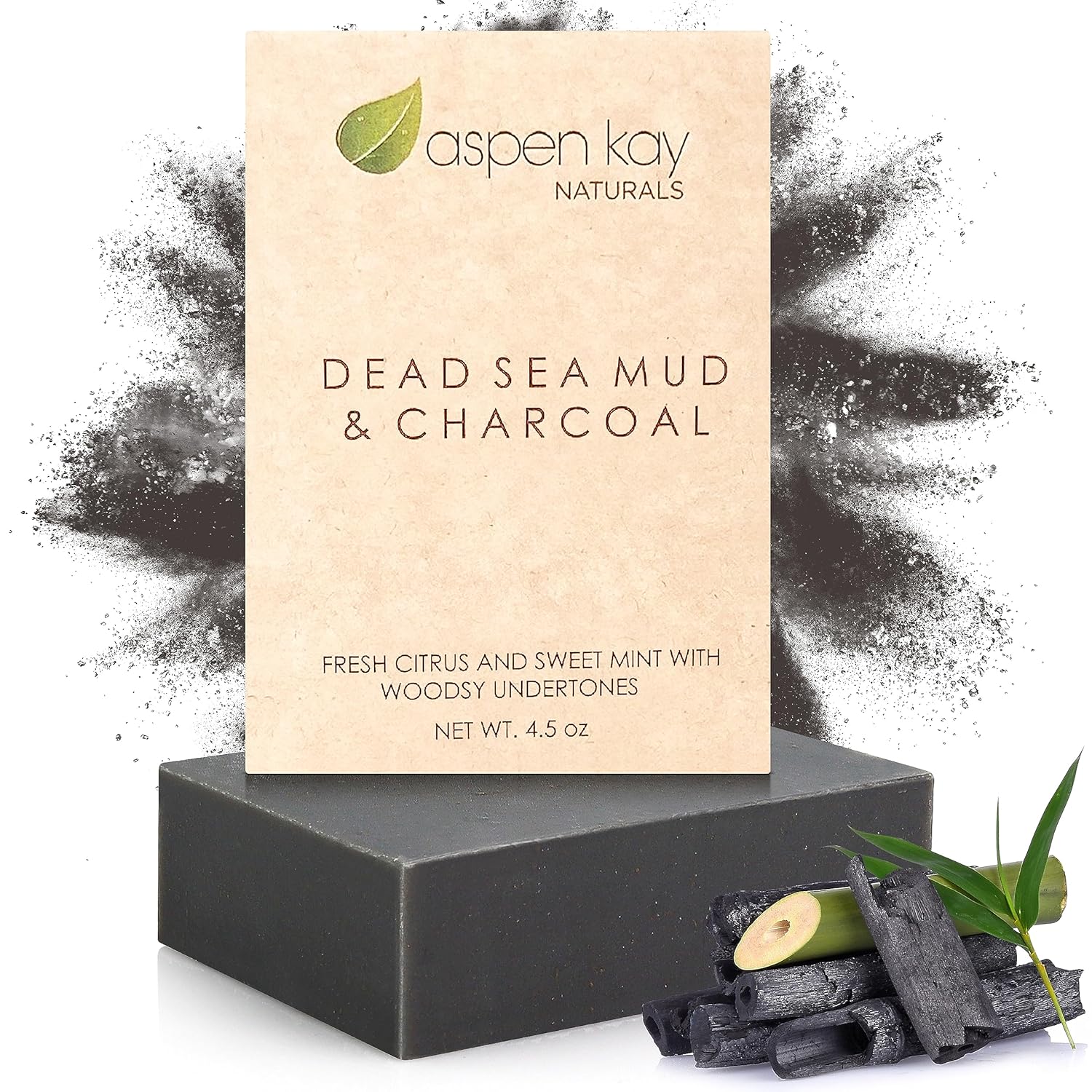 Aspen Kay Naturals Handmade Dead Sea Mud Soap Bar, Activated Charcoal & Pure Essential Oils, 4.5 oz Bar