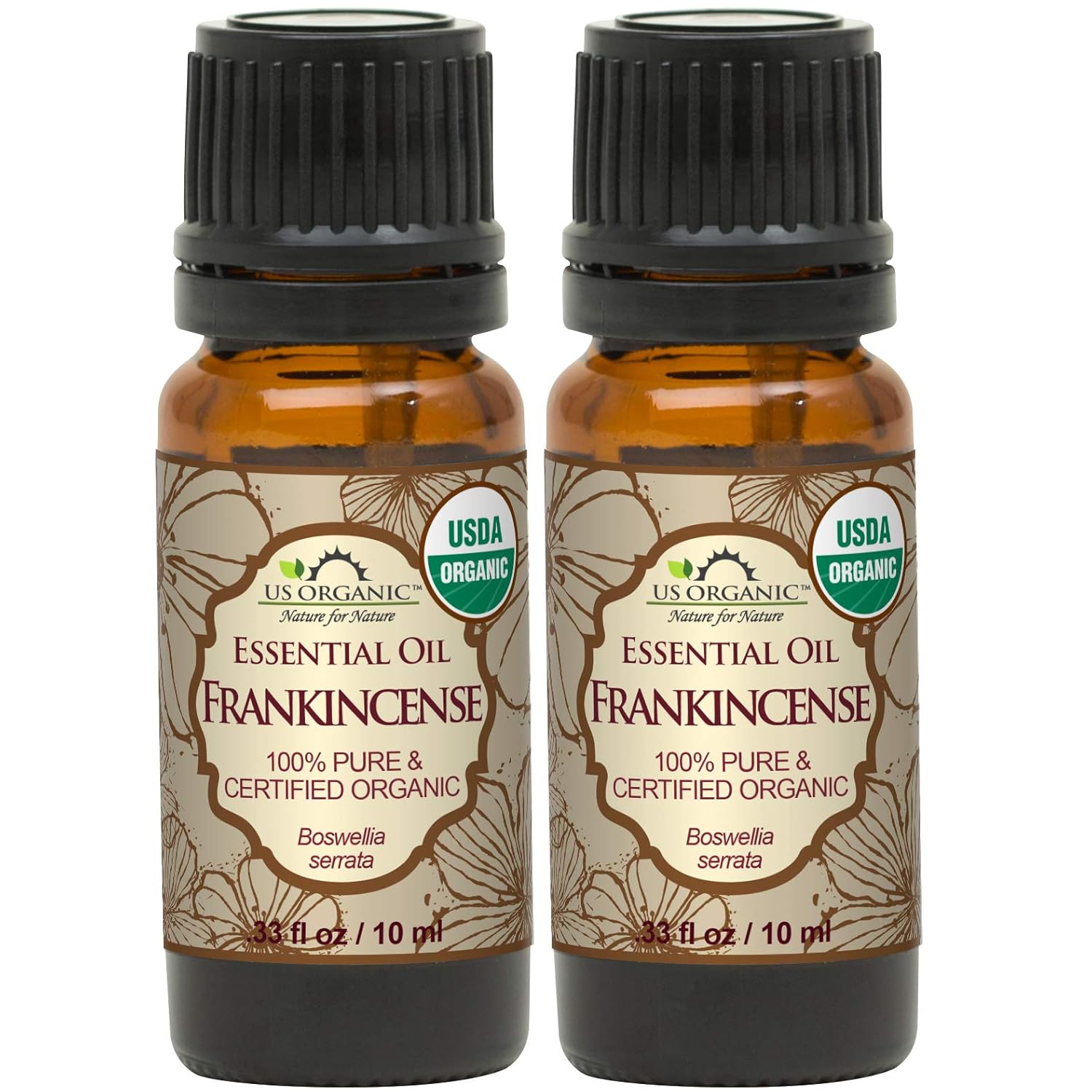 US Organic 100% Pure Frankincense Essential Oil, USDA Certified Organic, Steam Distilled, Boswellia serrata, Origin India, Use Topically or in Diffuser (10 ml, Value 2 Pack)