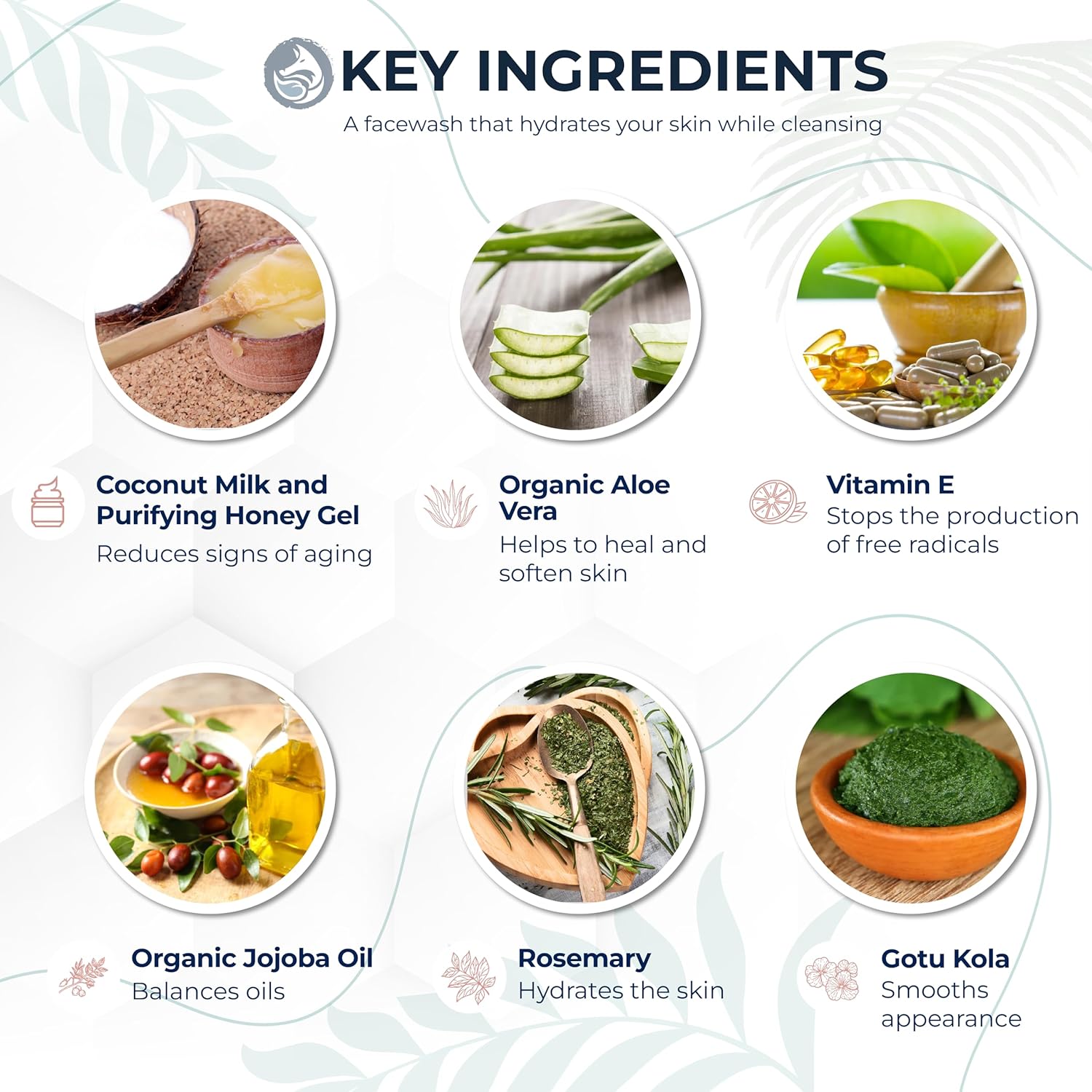 - Hydrating Face Wash For All Skin Types: Gently cleanse without stripping moisture. With coconut milk, jojoba oil, and raw honey, it nourishes and softens—ideal for dry, sensitive, or redness-prone skin, and balanced enough for oily or combination types.