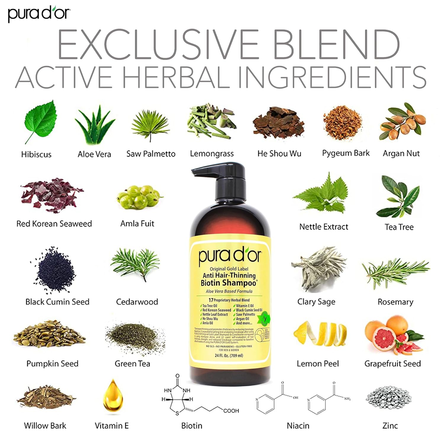 - PROTECT AND STRENGTHEN YOUR HAIR: Our PURA D'OR Original Gold Label Anti-Thinning Biotin Shampoo and Deep Moisturizing Biotin Conditioner set contains an organic aloe vera base instead of a water base for the cleanest, cruelty free best shampoo and conditioner set.