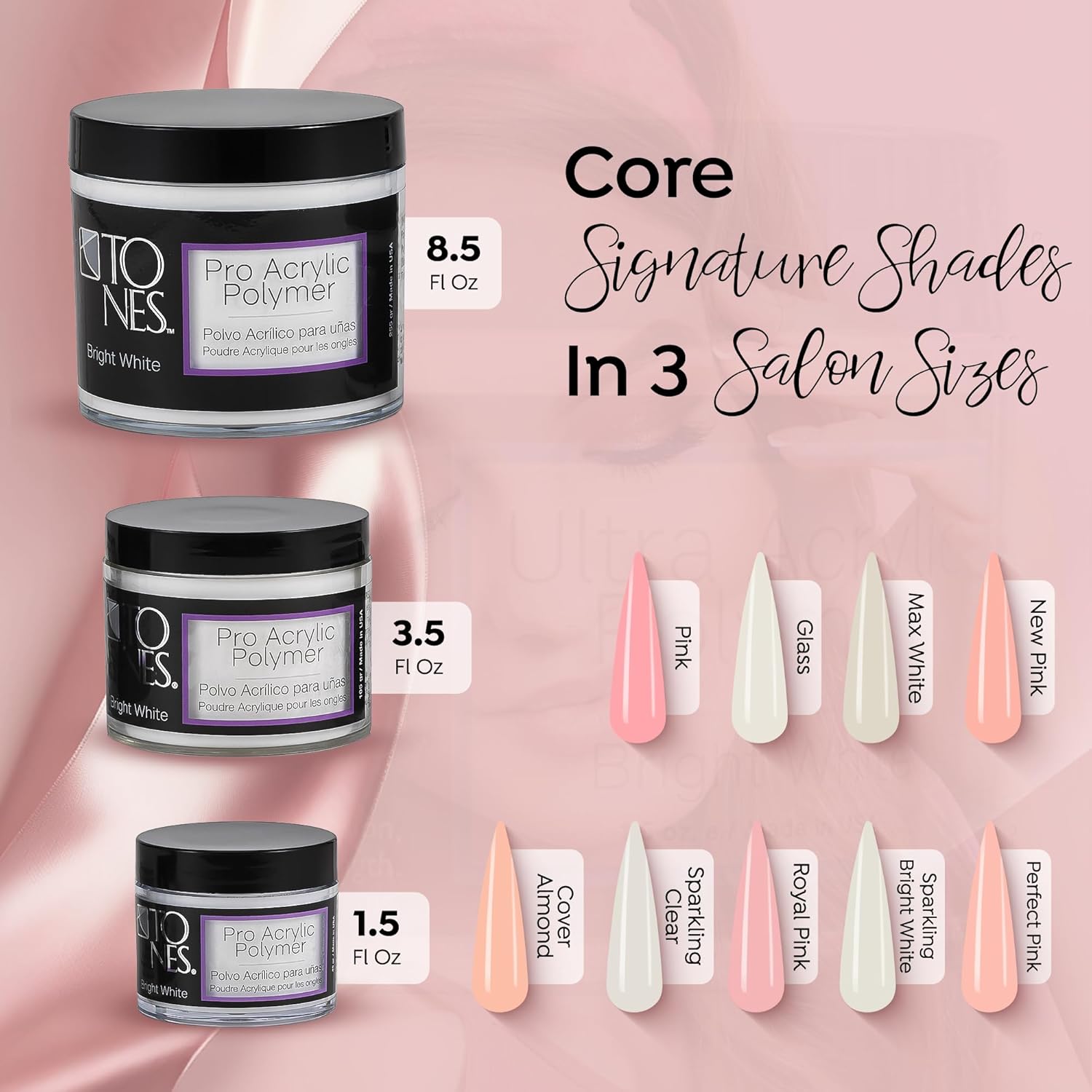 Tones Pro Acrylic Nail Powder, Sparkling Bright White (Opaque Off-White), (8.5 Fl Oz) - Long-Lasting & Non-Yellowing Polymer for Salon Quality Nail Extensions & 3D Art