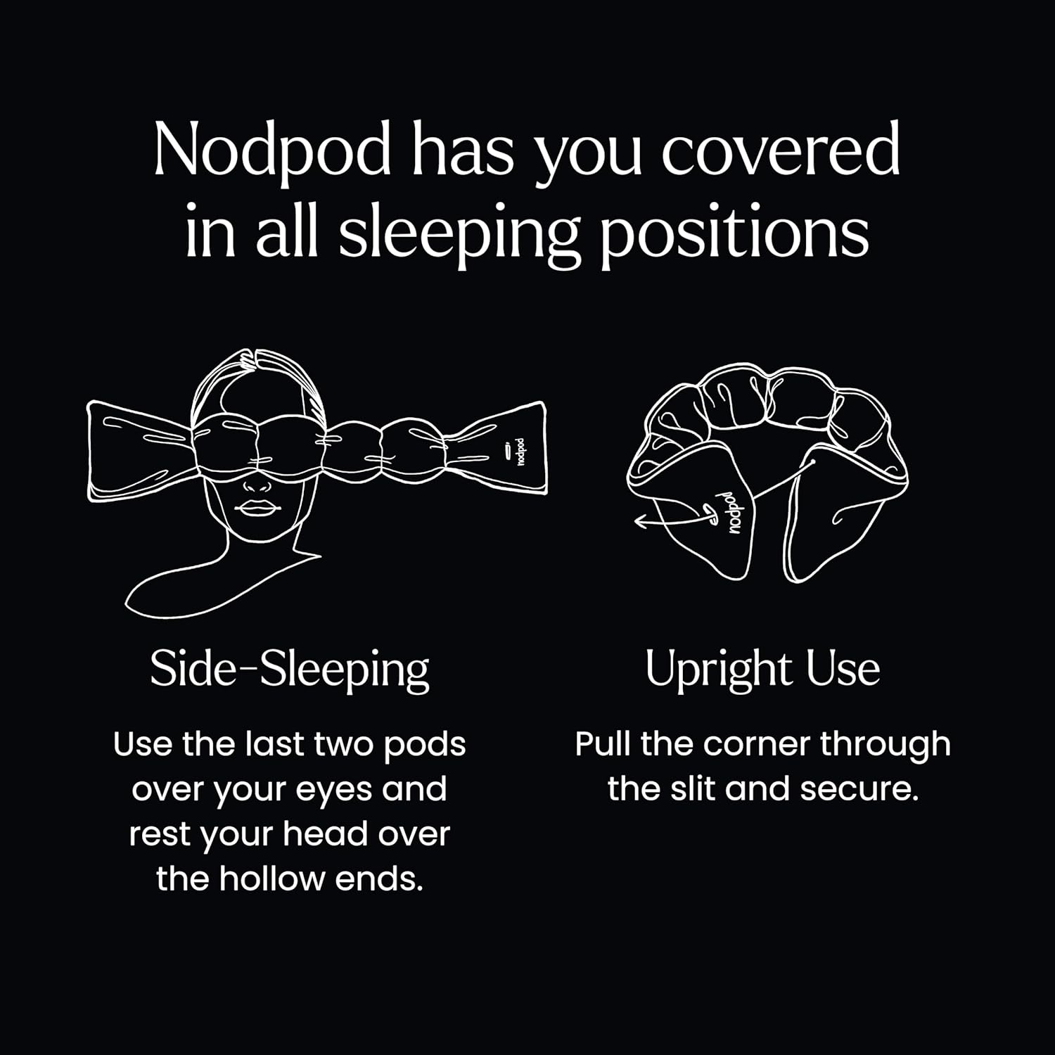 - FALL ASLEEP FASTER: 83% of users fell asleep faster with Nodpod. The blackout eye mask combines soft weighted pressure and light-blocking comfort to help you settle into deeper, more restful sleep in any position, whether at home or traveling.