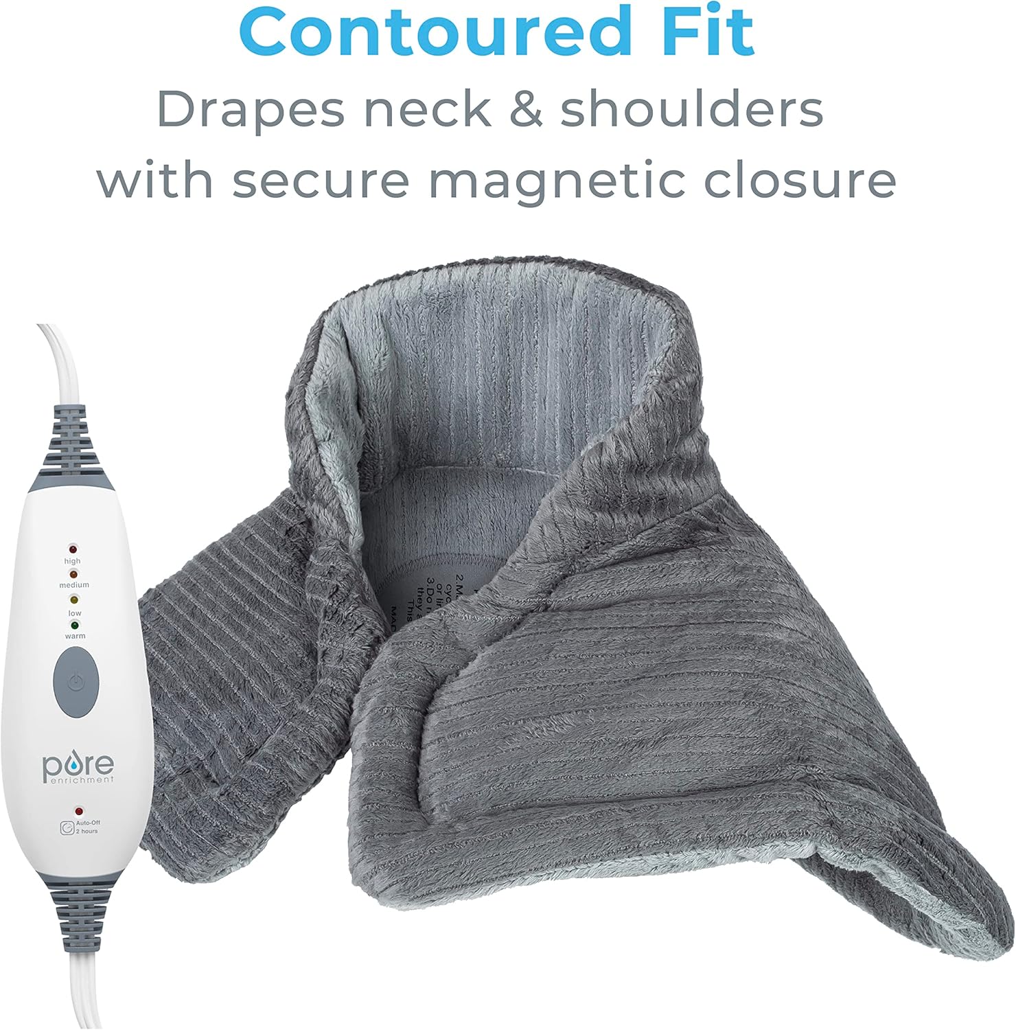 Pure Enrichment PureRelief Neck & Shoulder Heating Pad - 4 Heat Settings, Auto Shut-Off, Universal Fit, Magnet Closure, Soft Micromink, Storage Bag, 5-Year Warranty, Machine Wash (Charcoal Gray)