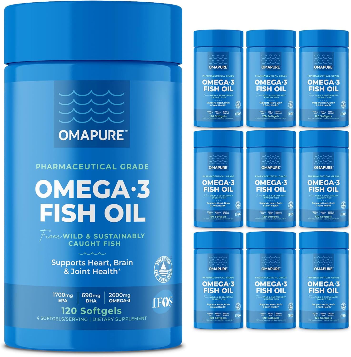 - Pharmaceutical Grade Omega-3s: OMAPURE Fish Oil is purified through molecular distillation and manufactured in the USA in a certified GMP facility, yielding an ultra-concentrated 75% Omega-3 supplement. Includes 10 bottles with 120 softgels each.