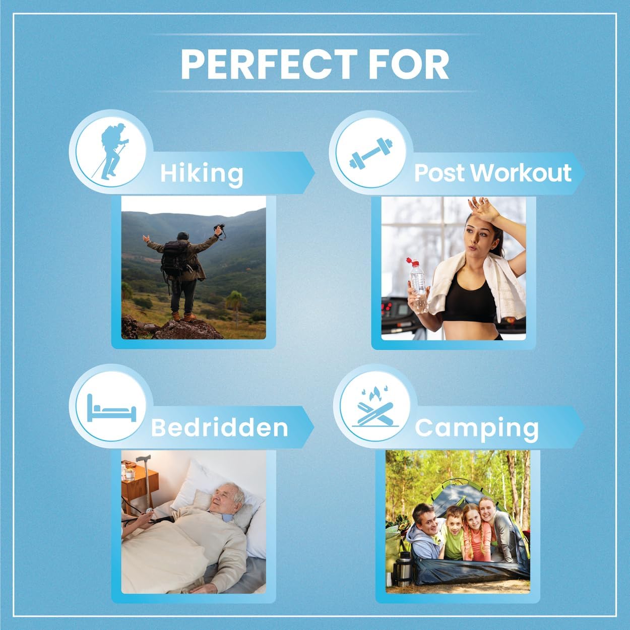 - ON THE GO BATHING SYSTEM - NO Shower No Problem Hygienic Rinse Free Bathing Anywhere & When Ever Needed , No Soap Required . Pack can be Microwaved + Environment Friendly !