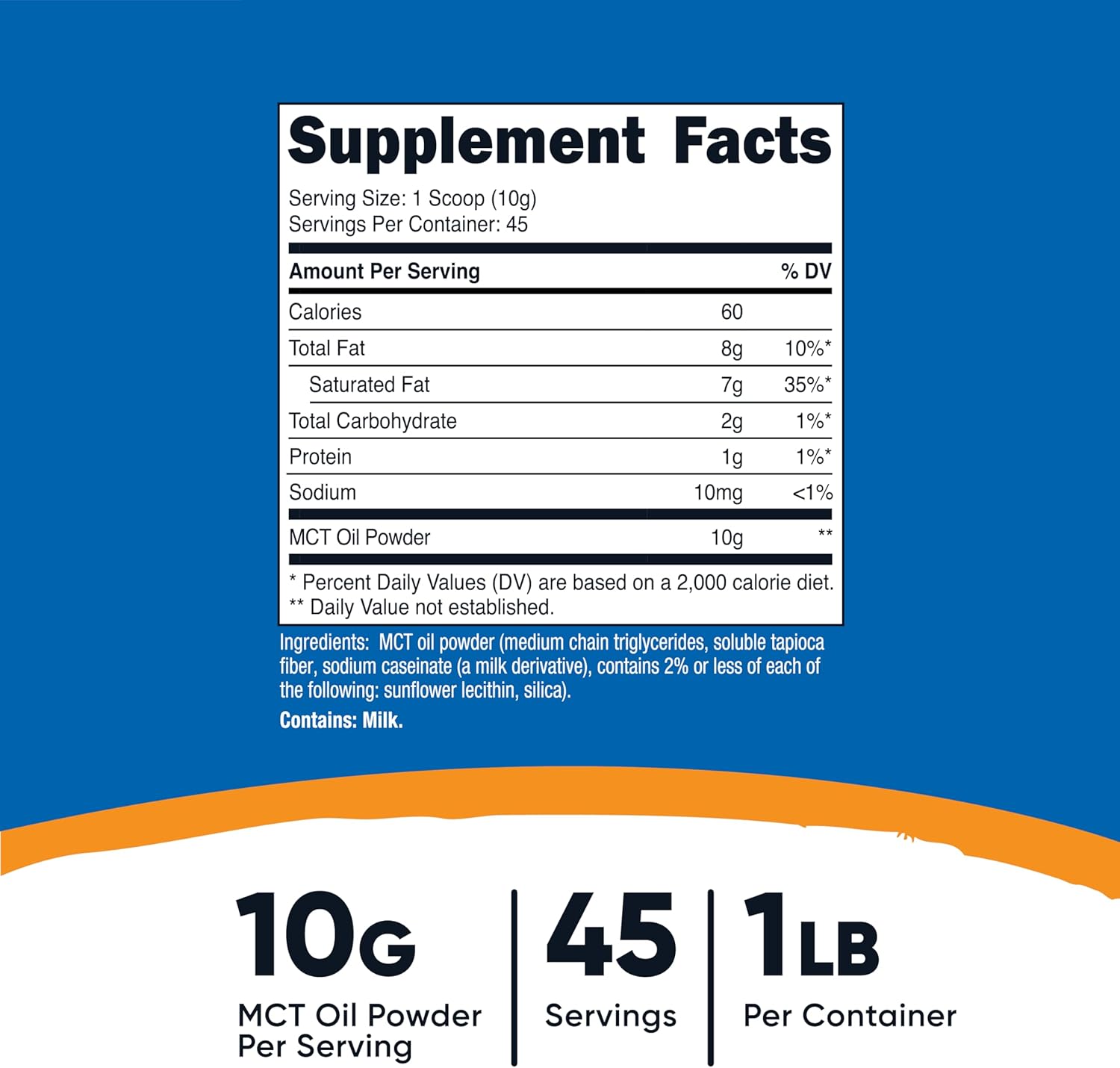 Nutricost MCT Oil Powder 1LB (16oz) - Great for Keto, Ketosis and Ketogenic Diets - Zero Net Carbs, Non-GMO + Gluten Free (Medium Chain Triglyceride)