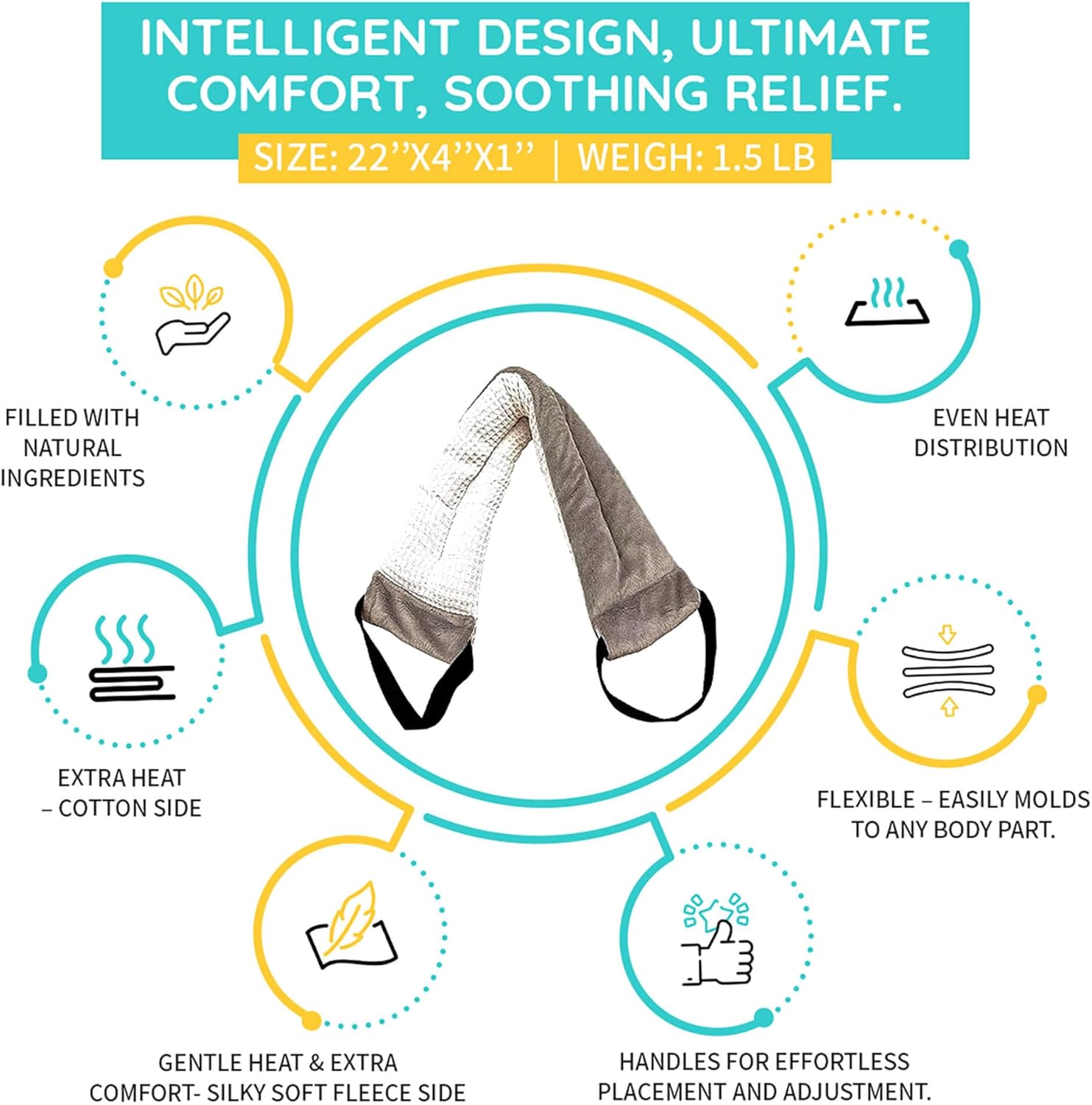 - SOOTHING, EFFECTIVE RELIEF: Our versatile microwavable heating pad is not just for your neck and shoulders. Ease aches and discomfort anywhere you feel them on your body. Our microwavable heating pads allow you to manage discomfort easily, safely, and effectively on your neck, shoulder, knee, elbow, and back. Manage muscle pain and cramps without the worry of side effects from taking medication.