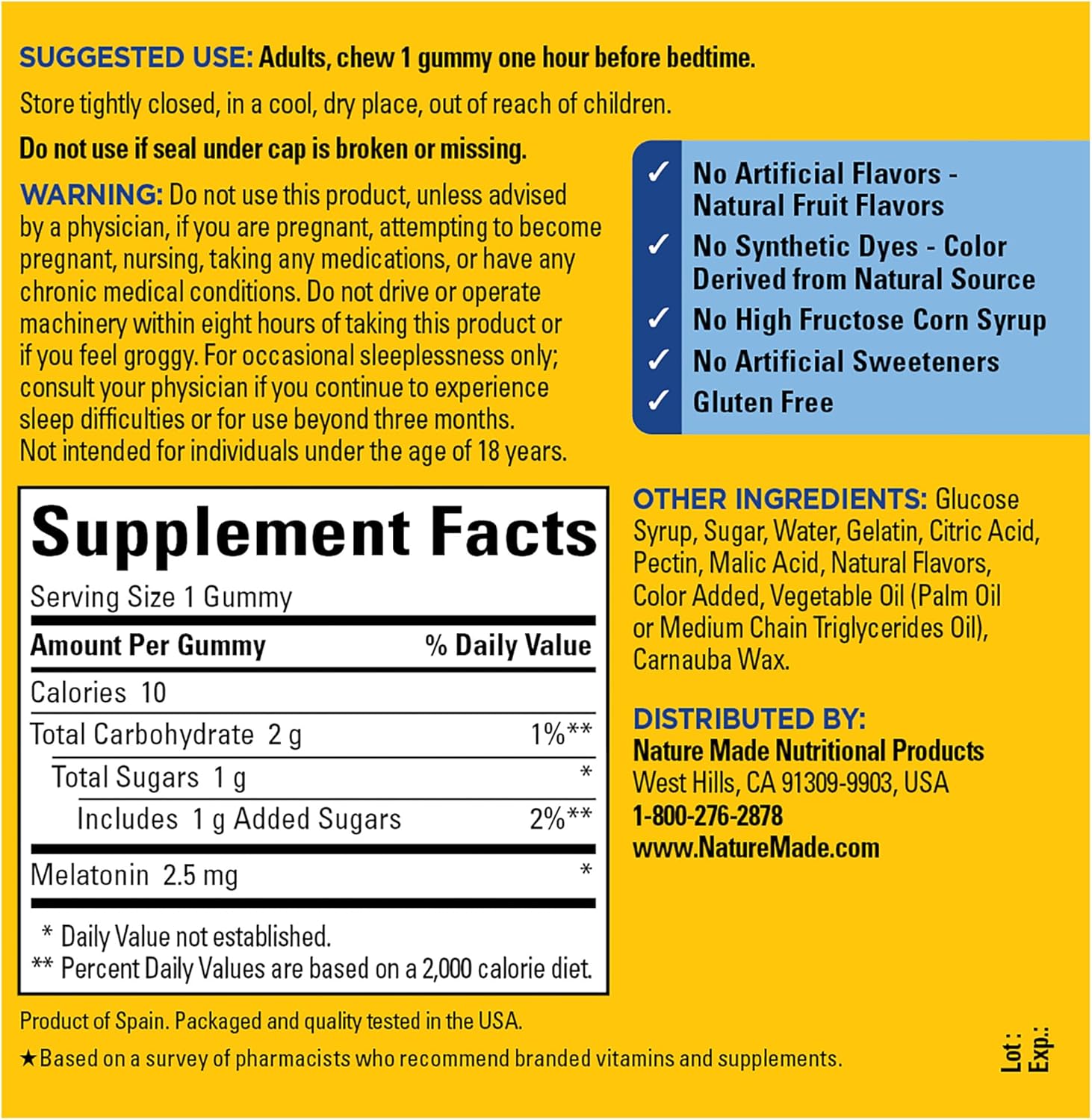- Nature Made Melatonin Gummies 2.5 mg is a lower dose melatonin for adults supplement that helps you fall asleep faster