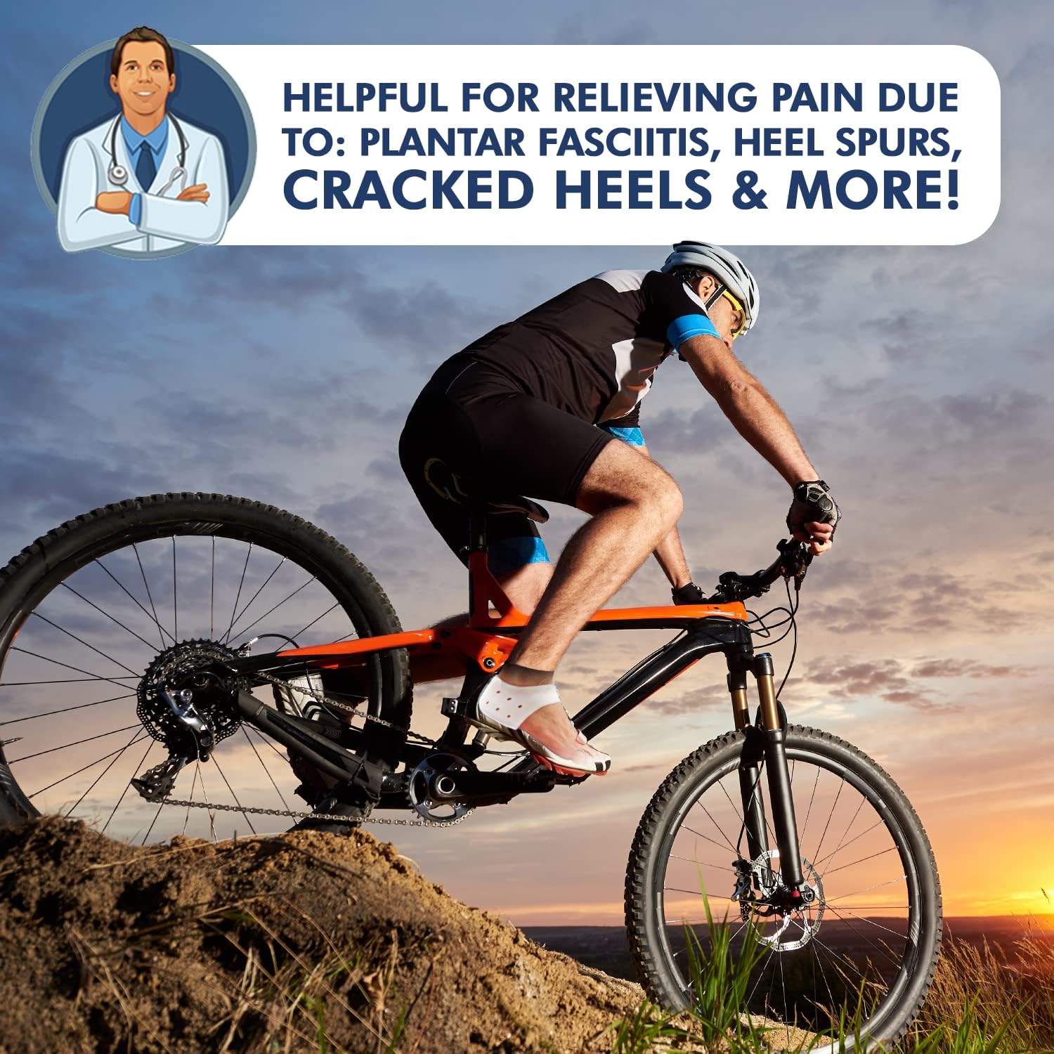- Product Benefits : Designed to fight heel pain from plantar fasciitis, heel spurs, bone spurs, cracked heels, calluses and other heel pain. Designed to fight heel pain from plantar fasciitis, heel spurs, bone spurs, cracked heels, calluses and other heel pain.
