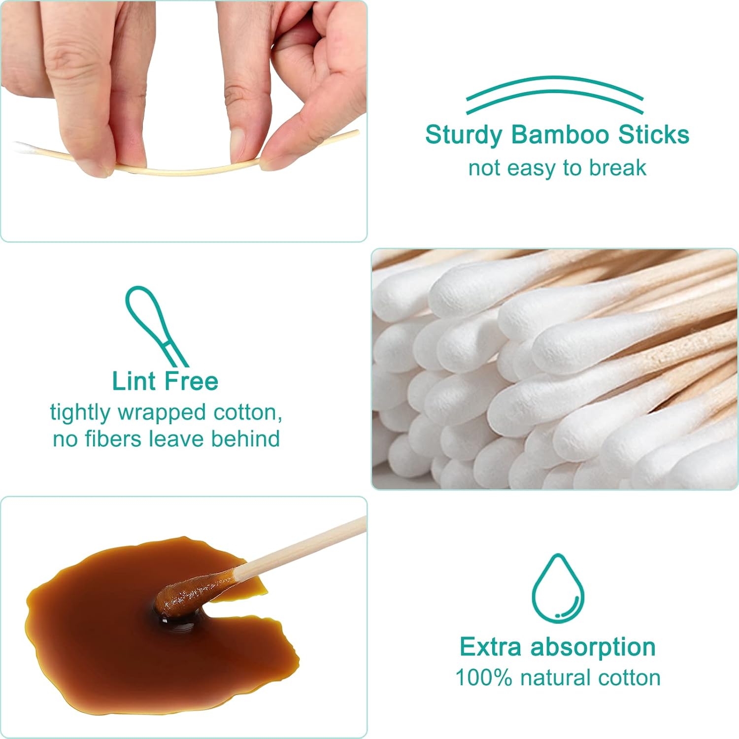 - Package included:✔️ 5 bag 500 pcs 6 inches cotton swabs + ✔️ 1 bag 100 pcs 3 inch double tipped cotton buds for ears; Bag package is clean and portable to carry on your bag or on medicine chest in home use. Product Details: Material: 100% natural plastic-free wooden handle cotton tips; Size:6 inch + 3 inch length; Type: one headed extra long cotton stick & double round cutips for ears.
