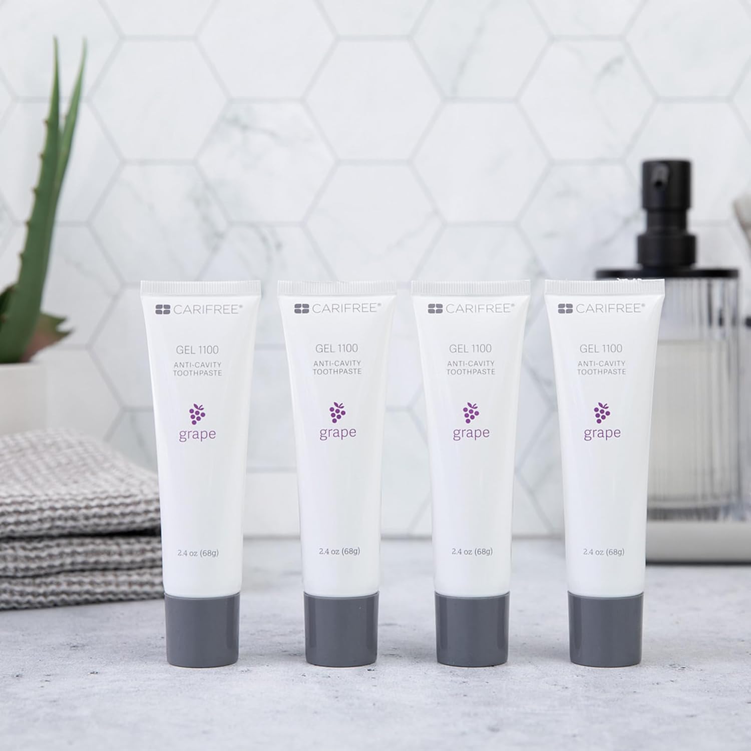 CariFree Gel 1100, Grape Flavored, Anti-Cavity Fluoride Toothpaste with Nano Hydroxyapatite for pH Neutralization, Enamel Protection, Dentist Recommended, Dentist Developed, 2.4 Ounce (Pack of 4)