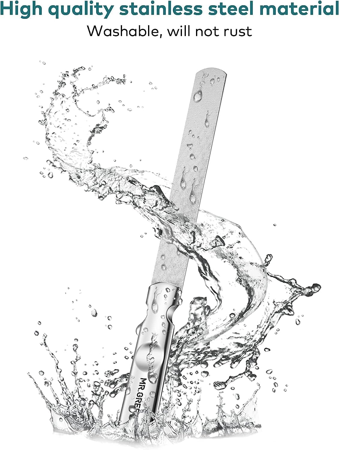 Stainless Steel Nail File with Anti-Slip Handle and Leather Case, Double Sided and Files Nails Easily for Men and Woman