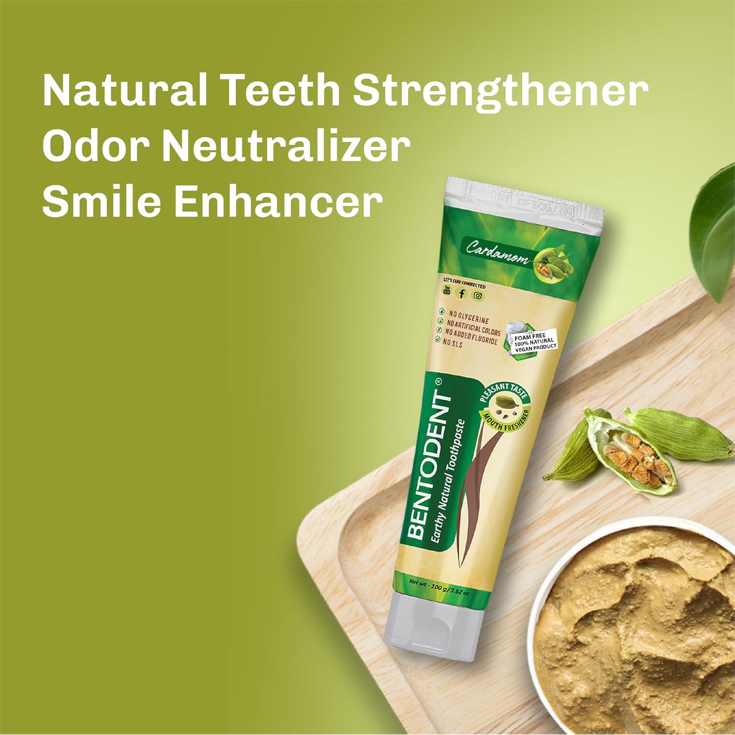 - 🌿 World's First Fusion: Bentodent Sensitive Remineralizing Fluoride free Natural toothpaste proudly introduces the world's first mineral toothpaste combining the natural detoxifying properties of Remineralizing calcium bentonite clay with the aromatic power of cardamom. A pioneering blend designed for the discerning individual seeking both efficacy and an unparalleled natural experience.