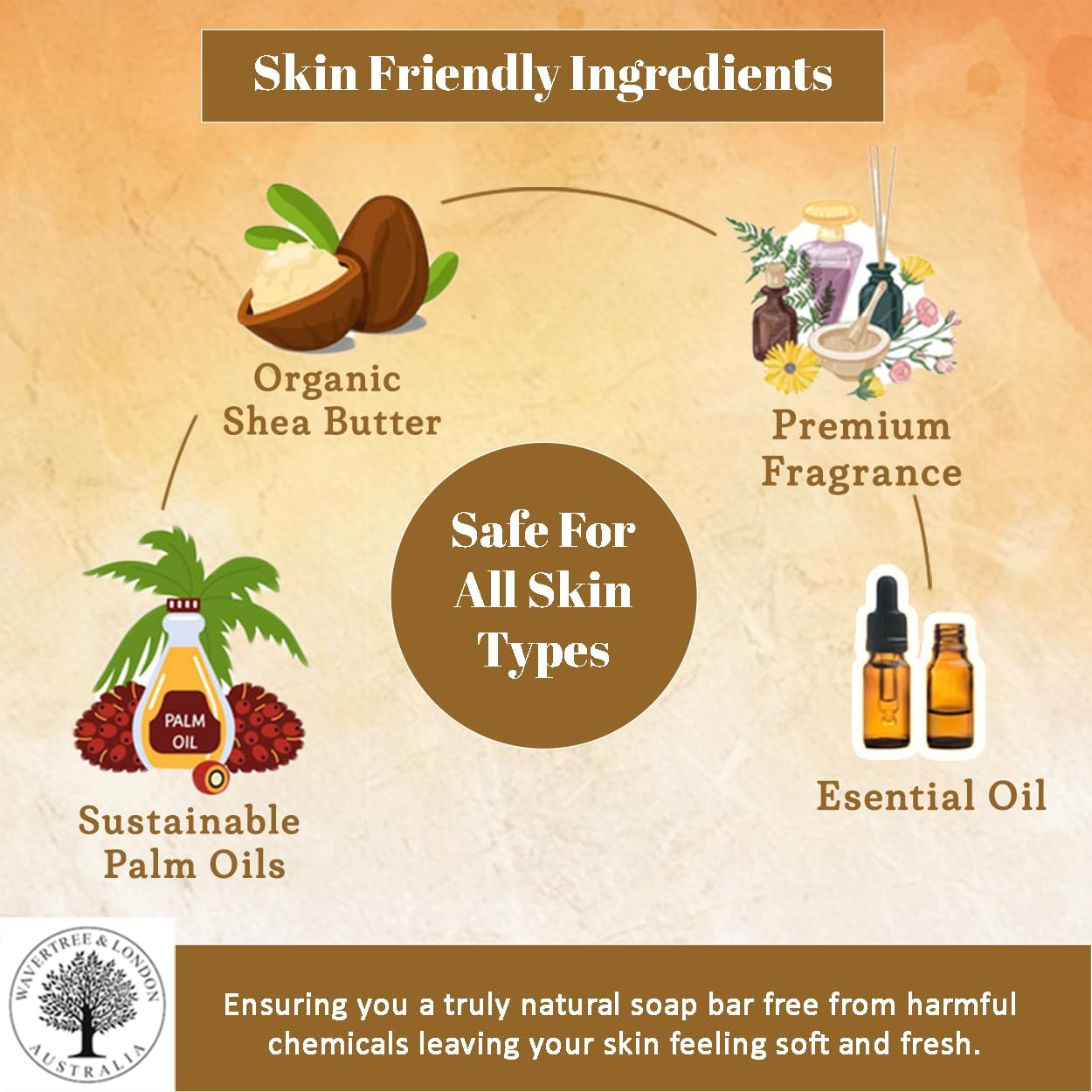 Wavertree & London Vanilla, Cedarwood, & Cinnamon Scented 100% Natural Soap Bar, 7oz Moisturizing French Triple Milled Soap Bar for Women & Men enriched with shea butter - Pure Bath & Body soap bar