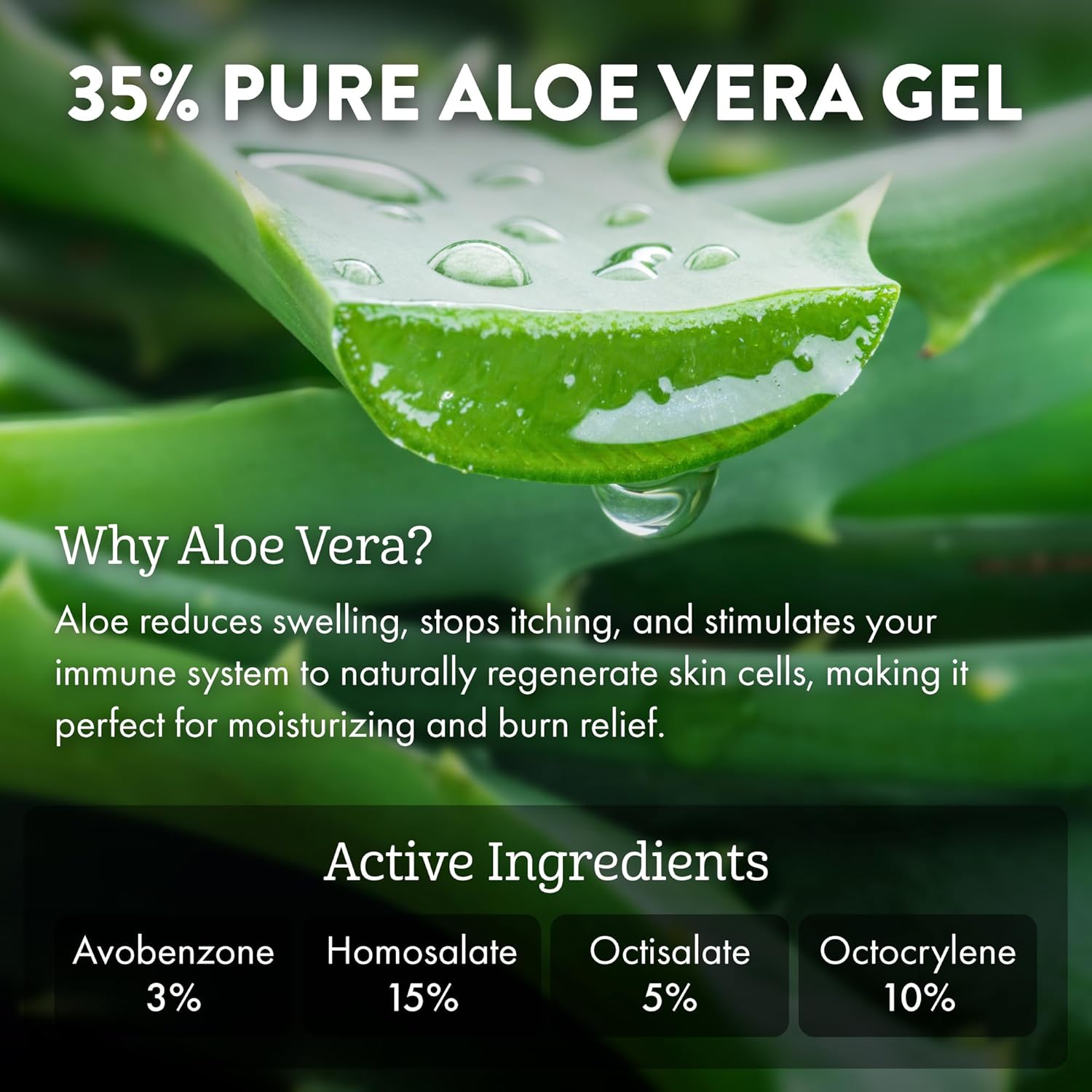 - Product Benefits : Broad-spectrum UVA/UVB protection, water resistant (80 minutes), reef-friendly sunscreen with soothing aloe vera and non-greasy finish for sensitive skin Broad-spectrum UVA/UVB protection, water resistant (80 minutes), reef-friendly sunscreen with soothing aloe vera and non-greasy finish for sensitive skin