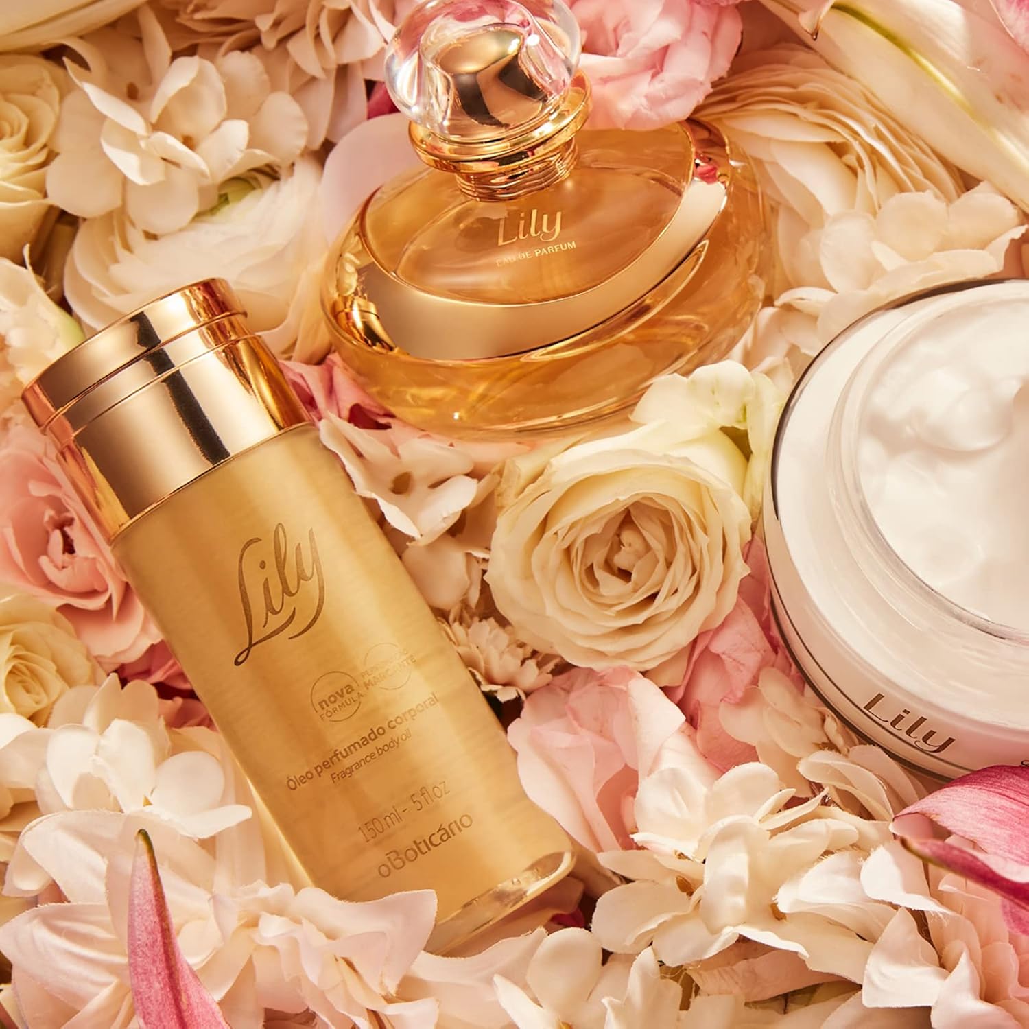 - LILY BODY OIL: Envelops your skin with the captivating fragrance of Lily Eau de Parfum, Boticário’s best-selling women’s perfume that celebrates the soul of the Stargazer Lily.