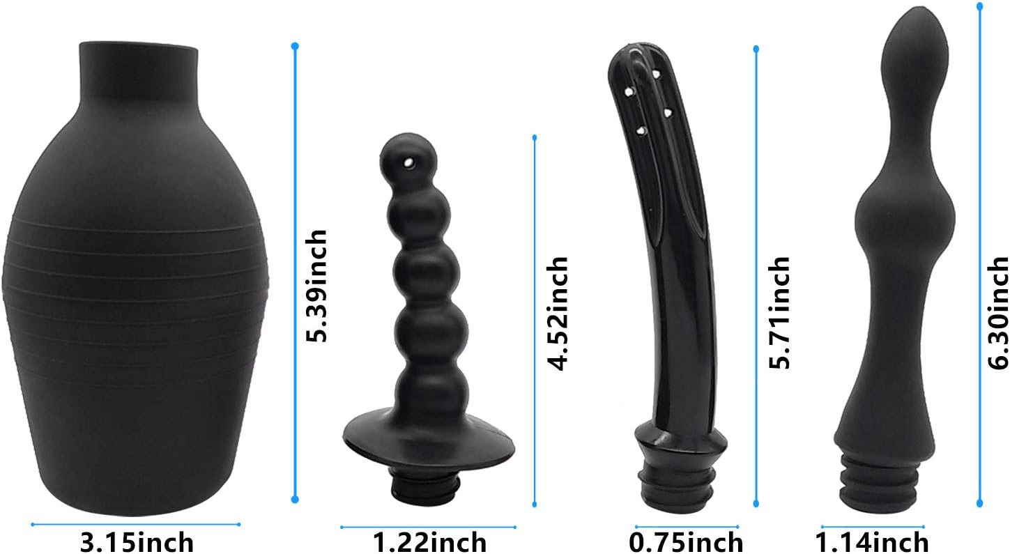 - 310ML capacity black silicone enema bulb with 3 nozzle is made of premium medical PVC, BPA FREE and used for anal.