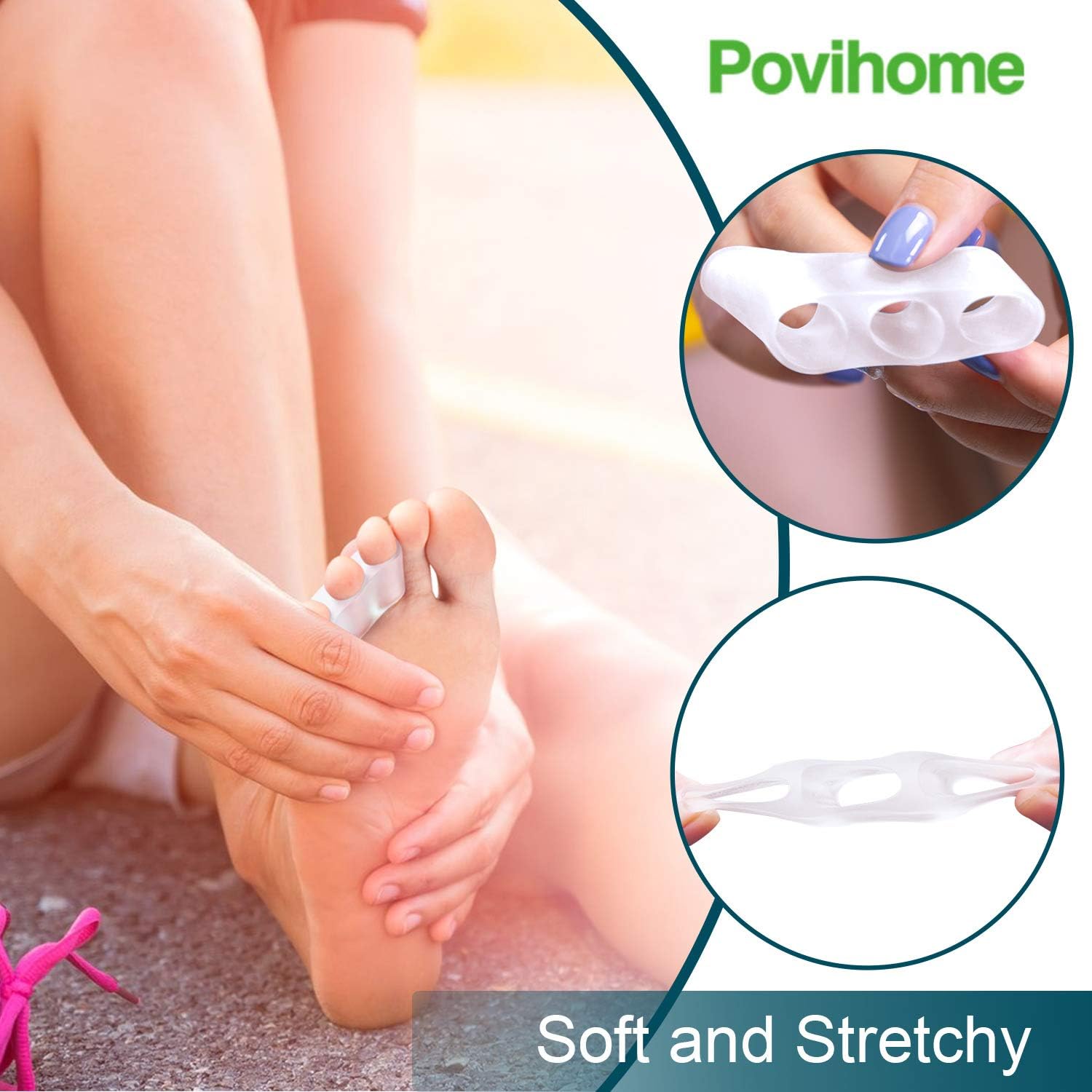 - Not for Toe Straightening: Povihome little toe spacer are made of super soft silicone. They are useful in separating and protecting pinky or smaller toes. But they are not sturdy enough to fully straighten the toes, like hammer toe, crooked toes.