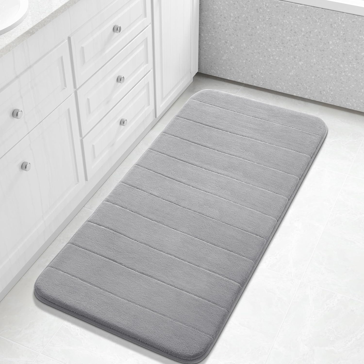 - 【Cloud-Like 5X Softness: Memory Foam Supreme Comfort】Made with premium memory foam that’s 5x softer than ordinary bathroom mat, providing a cushiony feel underfoot. The luxurious material gently conforms to your feet, offering unmatched comfort after every shower or bath