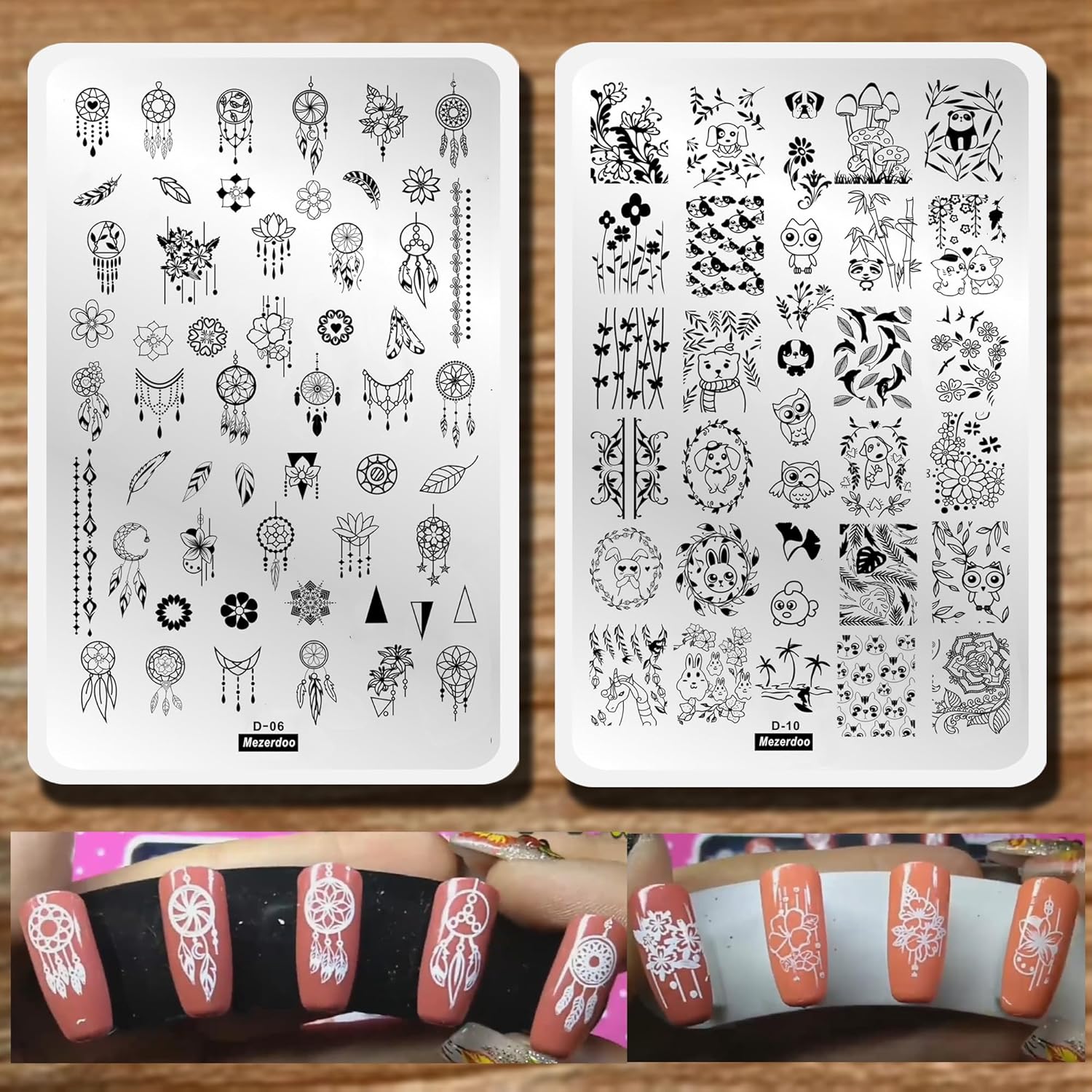 2pcs Mix Nail Art Stamp Template Dreamcatcher Feather Pendant Image Nail Stamping Plates Cute Animals Cartoon DIY Designs Manicure Stamper Plate Stencils