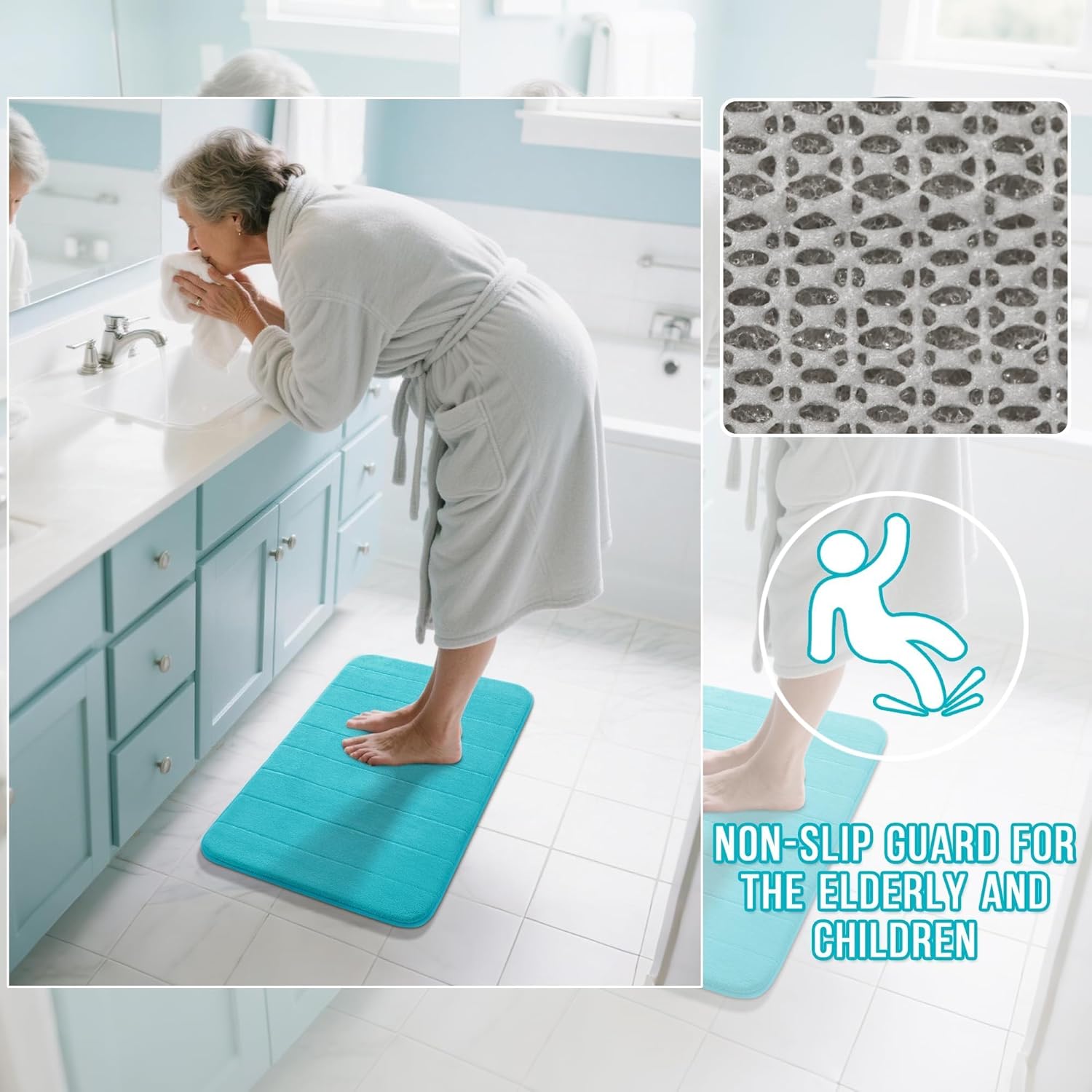 Yimobra Memory Foam Bath Mat, Super Soft Absorbent Bathroom Rug Non Slip 24x17 Inch, Quick Dry, Machine Washable Floor Carpet for Tub Shower, Home Decor Accessories, Lake Blue