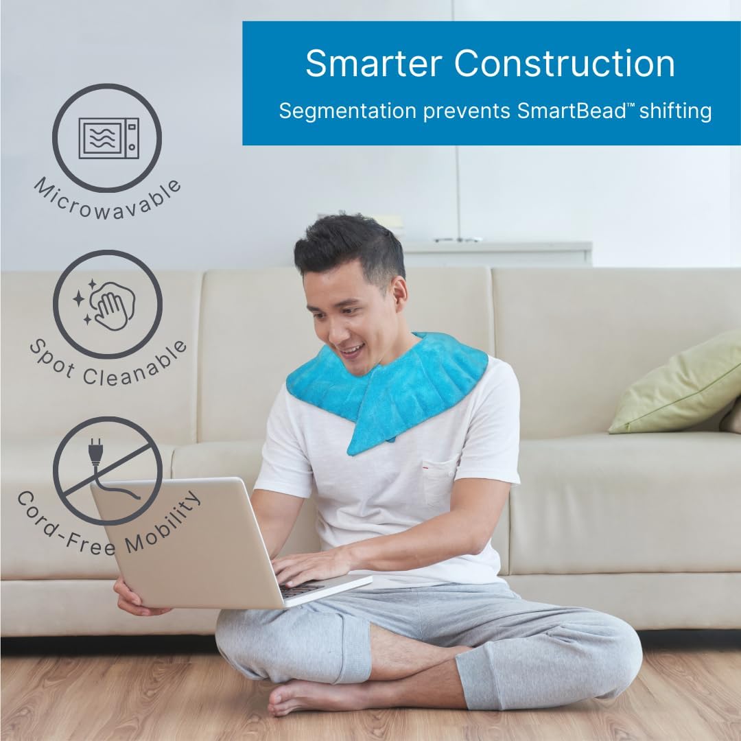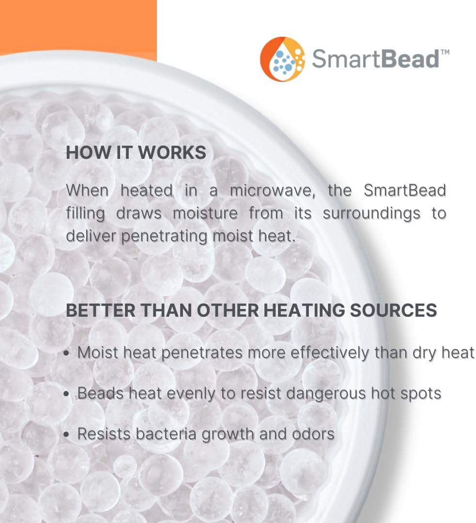 - SmartBed Technology - The horizontal back chambers ensure that the SmartBead filling remains in place for an effective moist heat treatment for neck and shoulder pain relief! Our innovative SmartBead technology enables moisture retention to ensure deep penetrating heat for neck pain relief, shoulder pain relief and back pain relief to help promote faster recovery that soothes and relaxes your body!