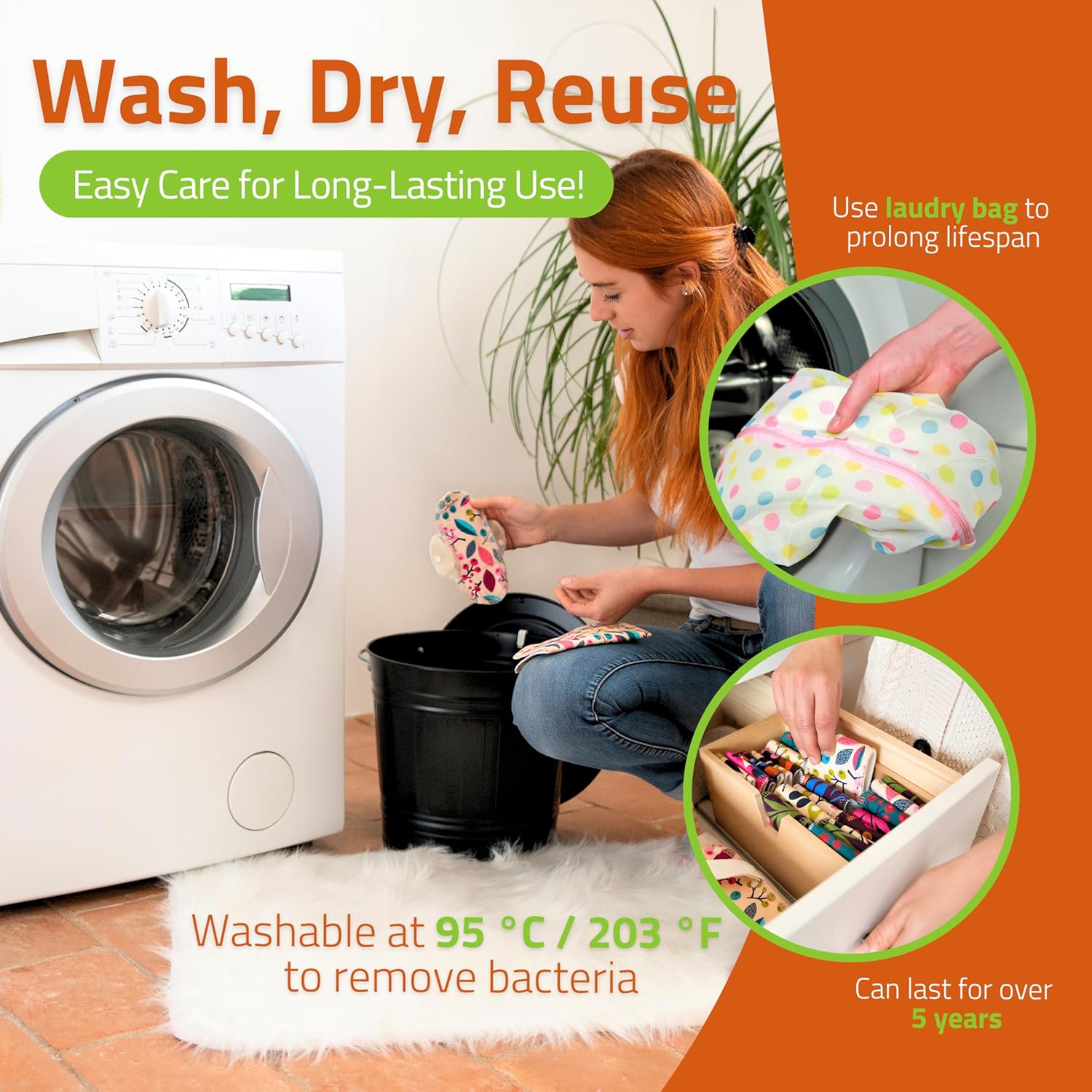 - EU-MADE FOR LONG-LASTING PERFORMANCE: Proudly designed and manufactured in the EU, these organic cotton panty liners are made for durability and resilience. Machine-washable at up to 95 °C / 200 °F and engineered for up to 5 years of sustainable use. These ultra-soft reusable panty liners for women & teens retain shape and absorbency wash after wash. We recommend washing our reusable liners in a laundry bag to prevent snags and preserve their softness.
