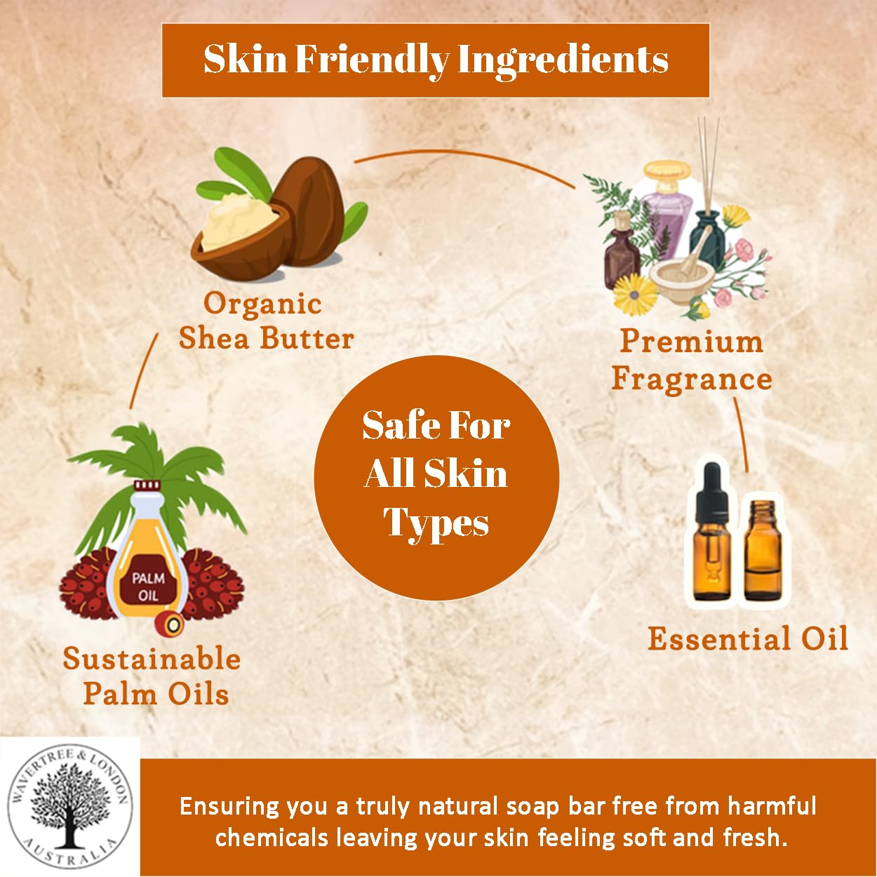 - 📋 Ingredients: Sustainable Palm oil, Palm Kernel Oil, Aqua (water), Certified Organic Shea Butter, Vegetable Glycerin, Essential Oils and/or Fragrance, Sodium Gluconate (natural sugar-based preservative), Sodium Chloride, Titanium Dioxide (food grade)