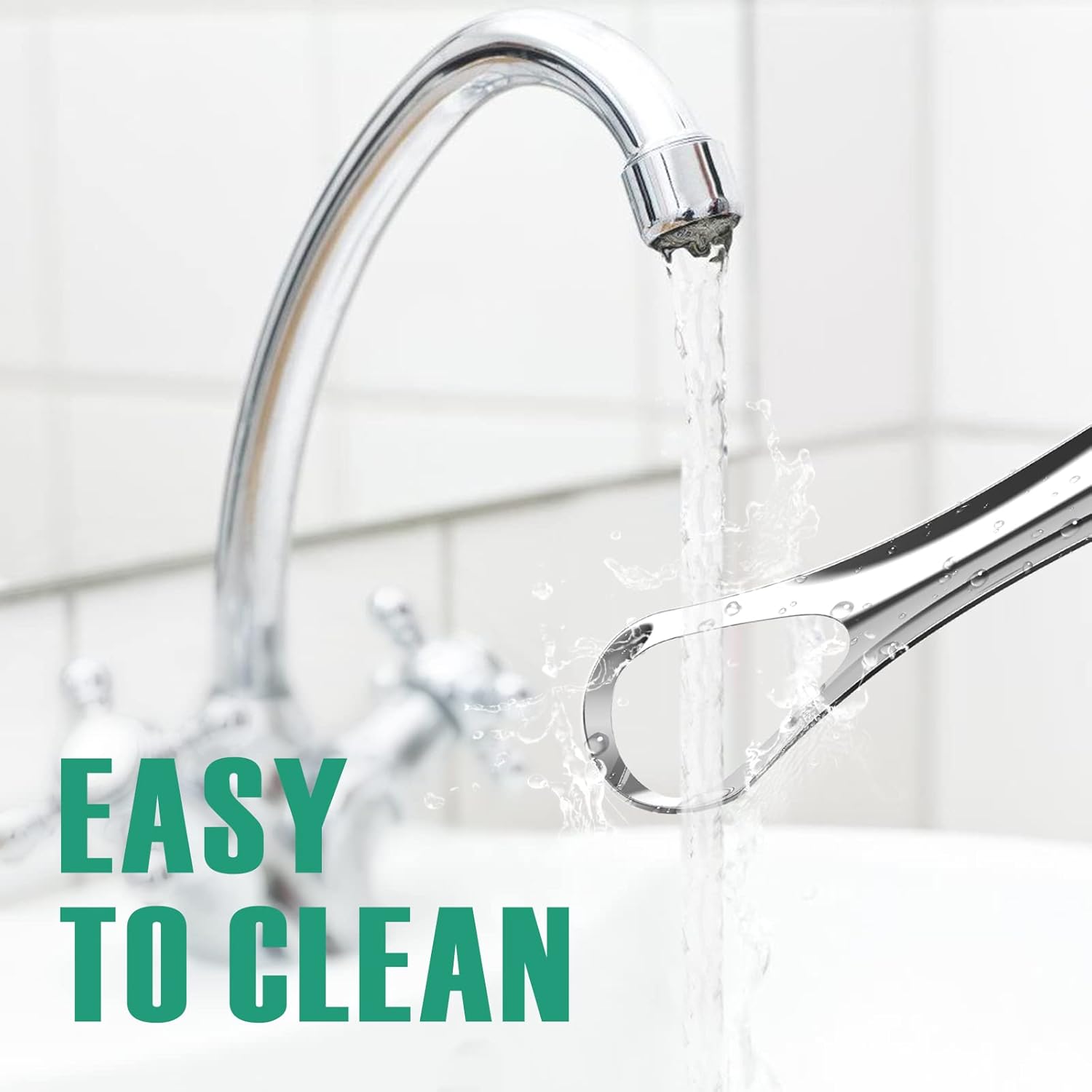 - Metal Tongue Cleaner: Our tough scrapers are made of high quality stainless steel that won't rust and last a long time. It is more hygienic, more environmentally friendly and more economical than the plastic tongue cleaner on the market. Ergonomically designed tongue scraper. Only one-handed operation is required. Simply wash the tongue scraper after each use with warm water.