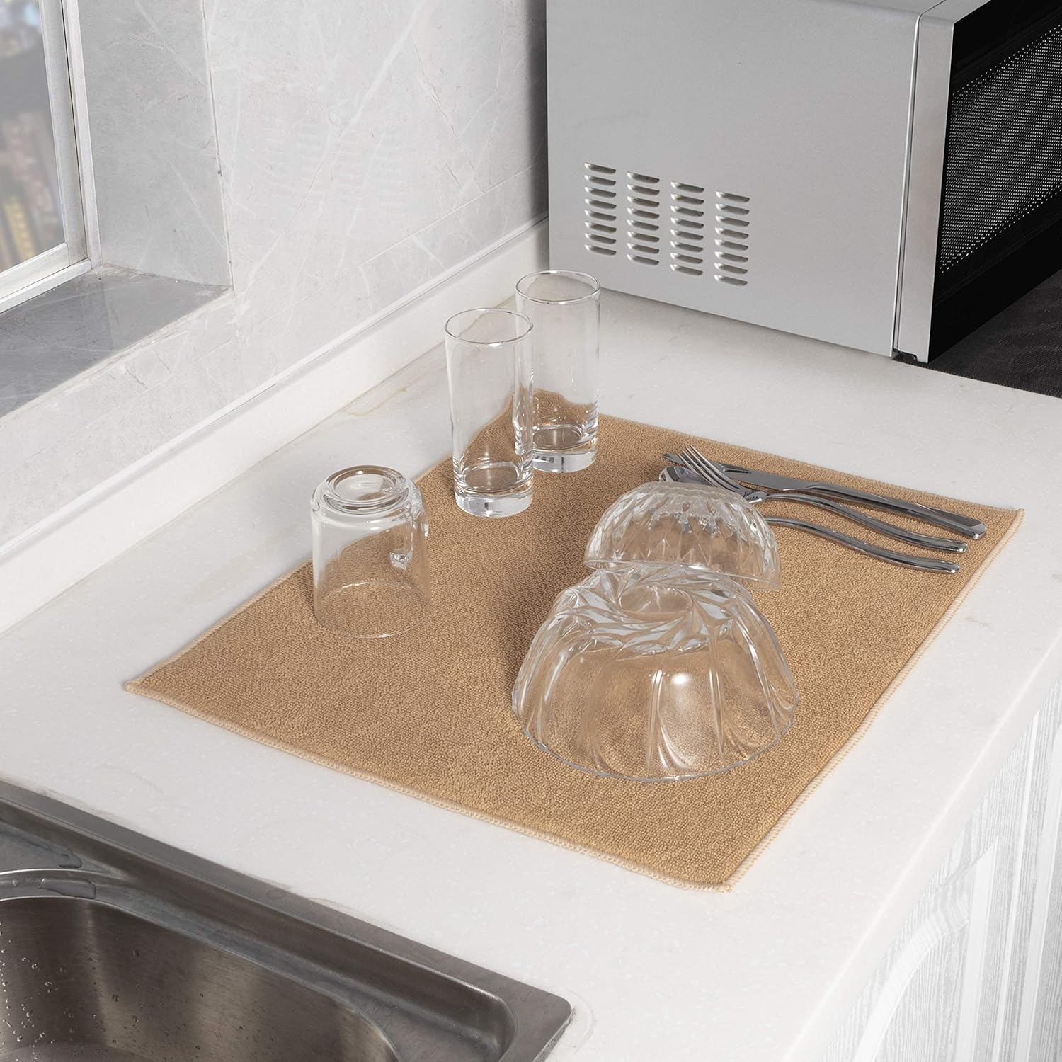 Absorbent, Reversible Microfiber Dish Drying Mat for Kitchen, 18 Inch x 24 Inch