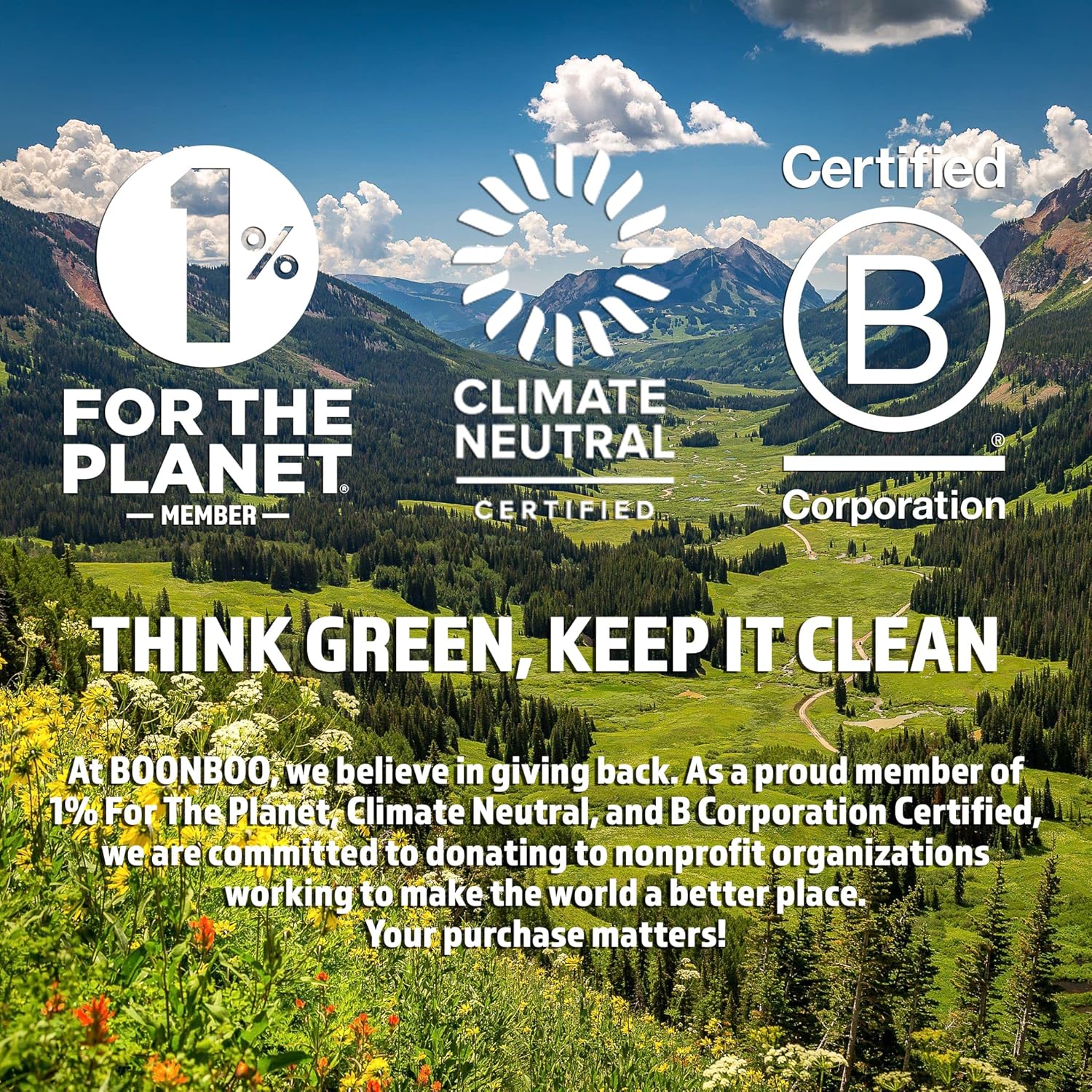 - BOONBOO is certified by Climate Neutral, B Corp, FSC, ISO, and member of 1% For The Planet.