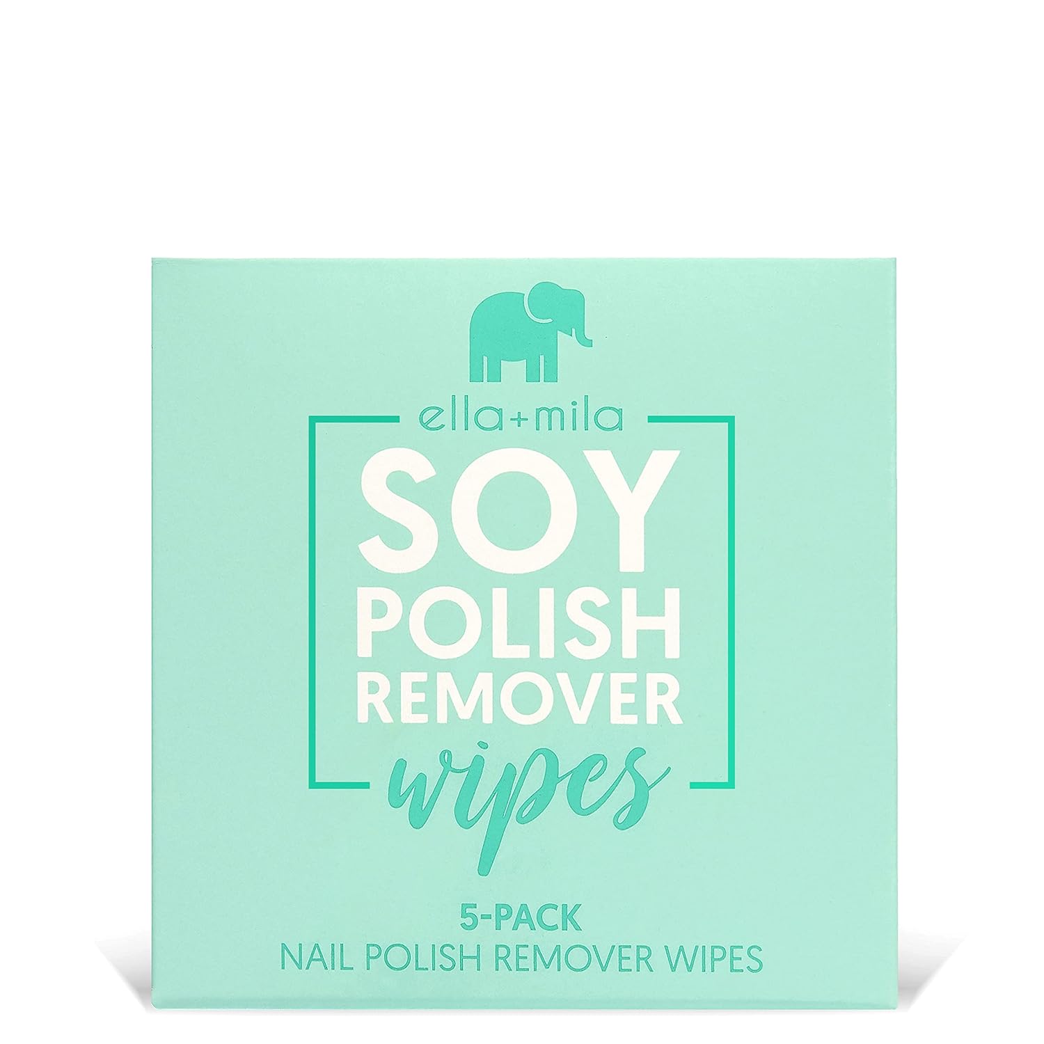 ella+mila Soy Nail Polish Remover Wipes Non-Acetone Lint Free Nail Wipes - Non-Toxic Fingernail Polish Remover - Unscented & Enriched with Vitamins A,C & E (5 Pack)
