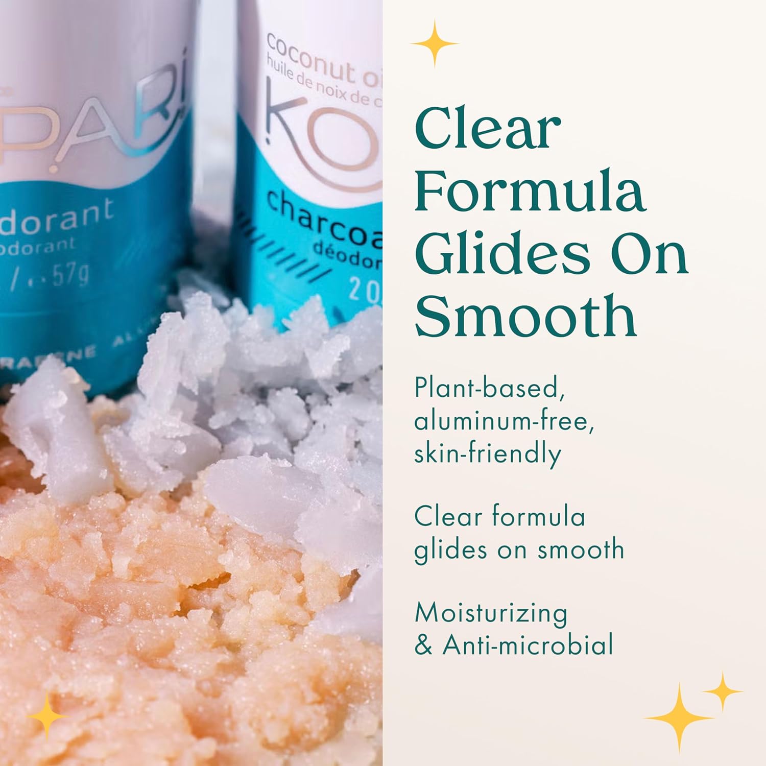 Kopari Aluminum Free Coconut Deodorant, Non Toxic & Clean Plant-Based, No Parabens or Baking Soda, Long Lasting Protection, Original & Charcoal 2 Pack