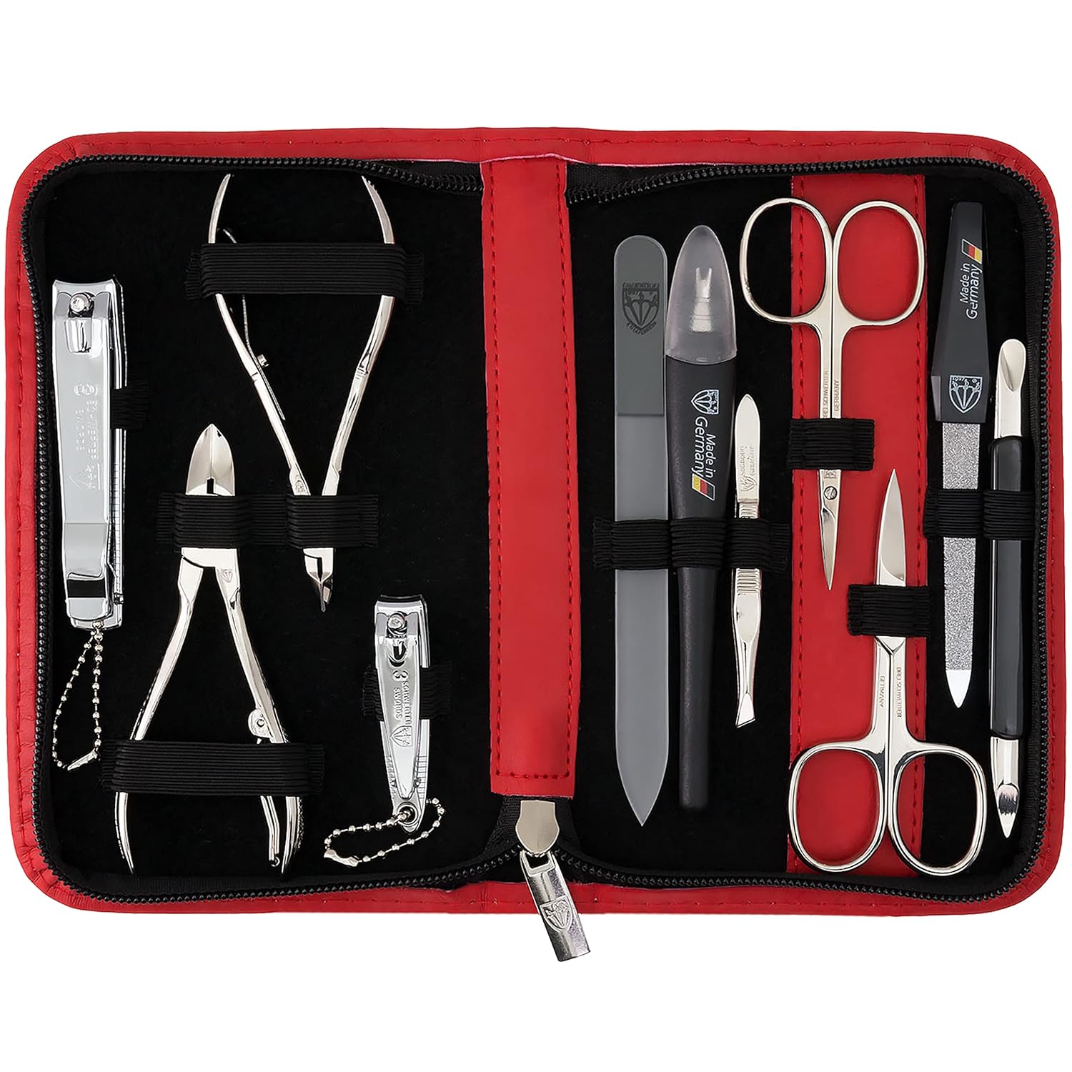 - STEEL IMPLEMENTS: Hand made, bright nickel plated (protection against corrosion), polished and hardened. All sets come in an attractive gift box. Instruments are made in Solingen / Germany (except nail clipper).