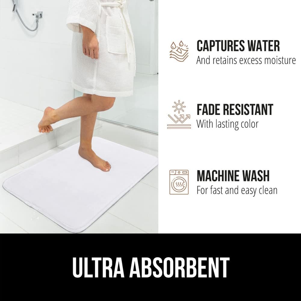 GORILLA GRIP Thick Memory Foam Bath Rugs, Soft Absorbent Velvet Bathroom Mats, Durable Dots on Underside, Machine Washable Bathmat, Carpet Rug Room Decor for Shower Floor, 36x24 Mat, White