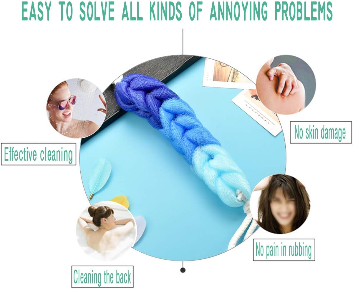 - ✔️USE FLEXIBLE: The mesh of bath sponge was soft and durable enough to used on the most delicate skin. would never scratch your skin. It also can effectively clean the skin and dirt. Perfect for cleaning the back, neck, shoulders, feet and hard to reach areas. the durable shower sponges that will not fall apart