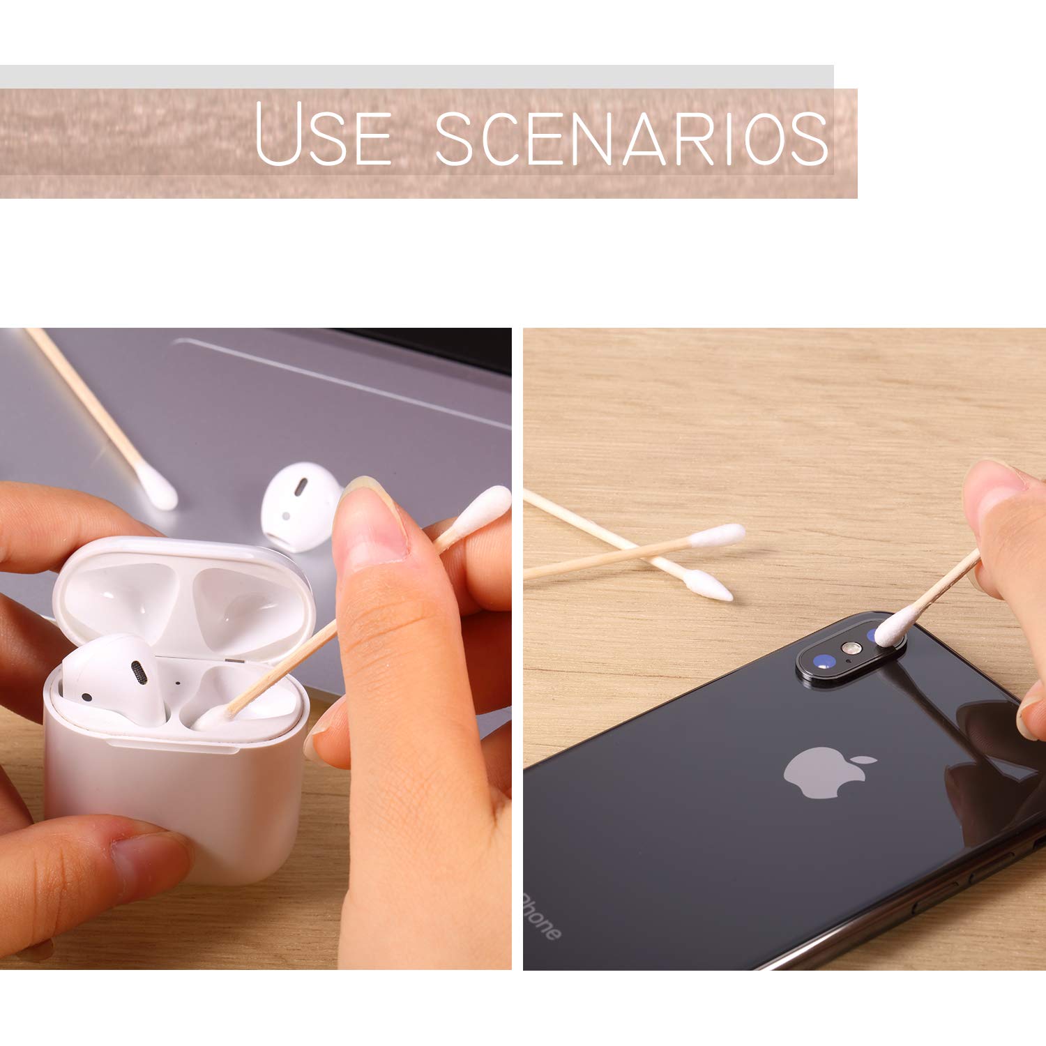 - Quality material: wood swabs are made of quality tip and wooden handle, material is gentle to the surface, wooden handle will not easy to snap, and has absorbability, keep your items clean