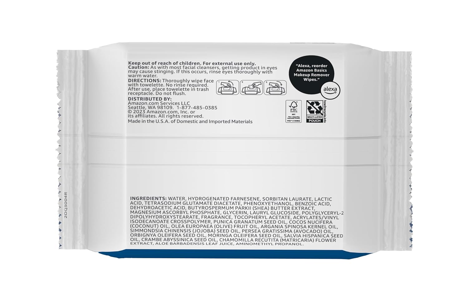 - Alexa voice shopping enabled: to place your next order, just say, “Alexa, reorder Amazon Basics Makeup Remover Wipes"