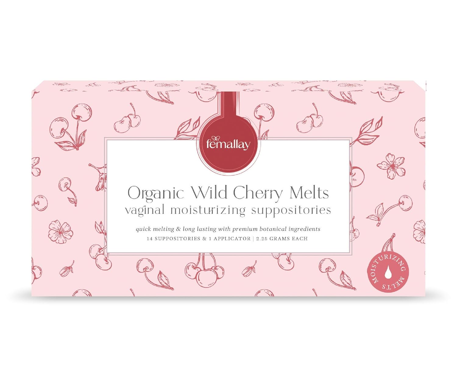 Femallay Organic Vaginal Moisturizing Suppositories – Wild Cherry – 100% Natural Relief for Dryness, Odor & Daily Feminine Discomfort – 14 Count + Applicator
